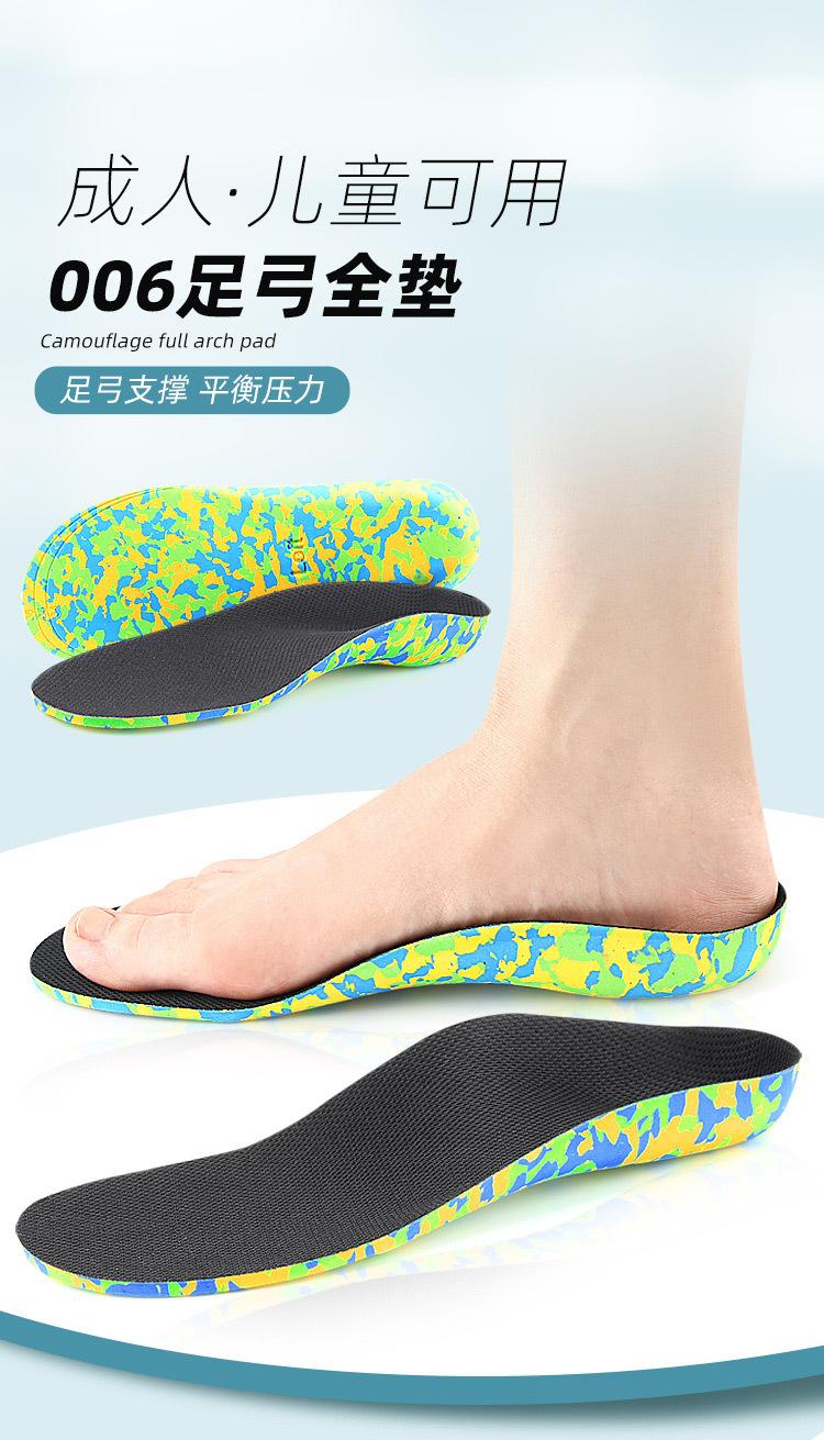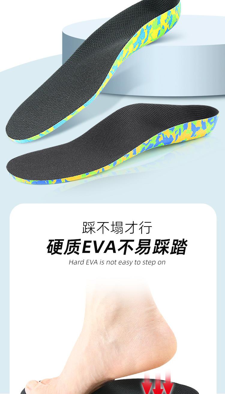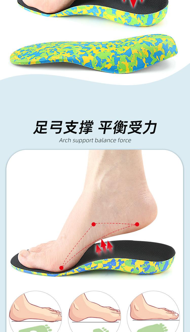 Nueva plantilla deportiva de EVA para pies planos para niños y adultos con amortiguación de impactos, soporte para pies con ocho interiores y ocho exteriores, almohadilla completa para arco del pie XO
