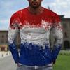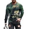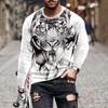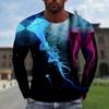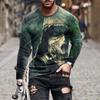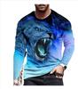 Camiseta holgada de cuello redondo con estampado digital 3D de manga larga para hombre, de primavera y otoño, de talla grande, para hombre de Europa y América.