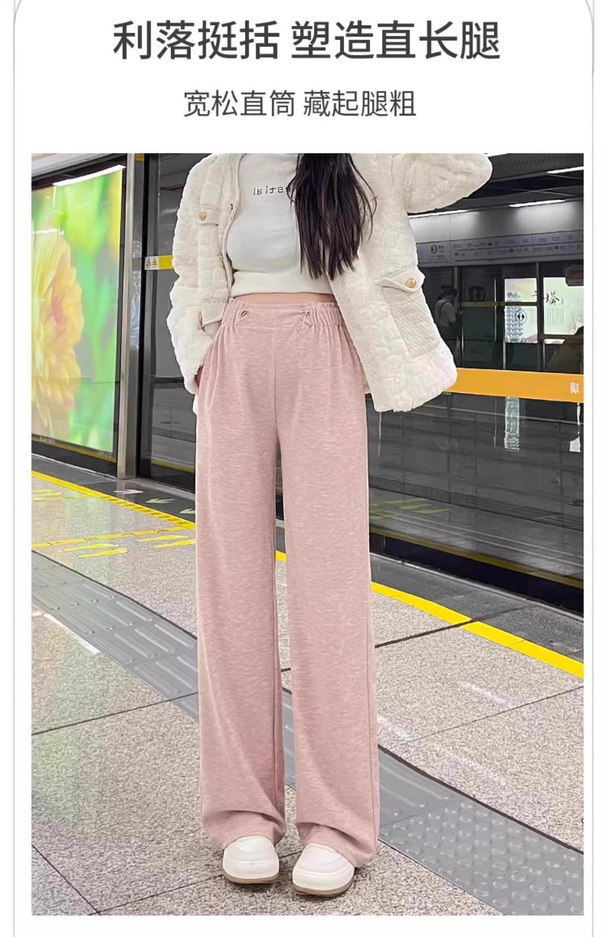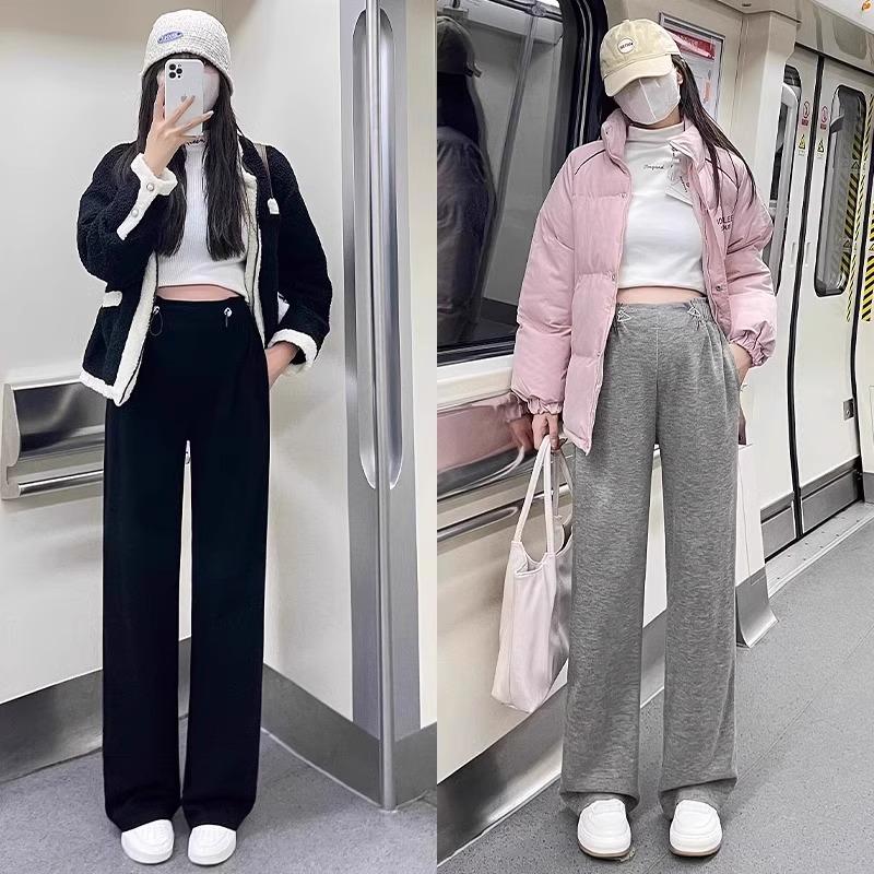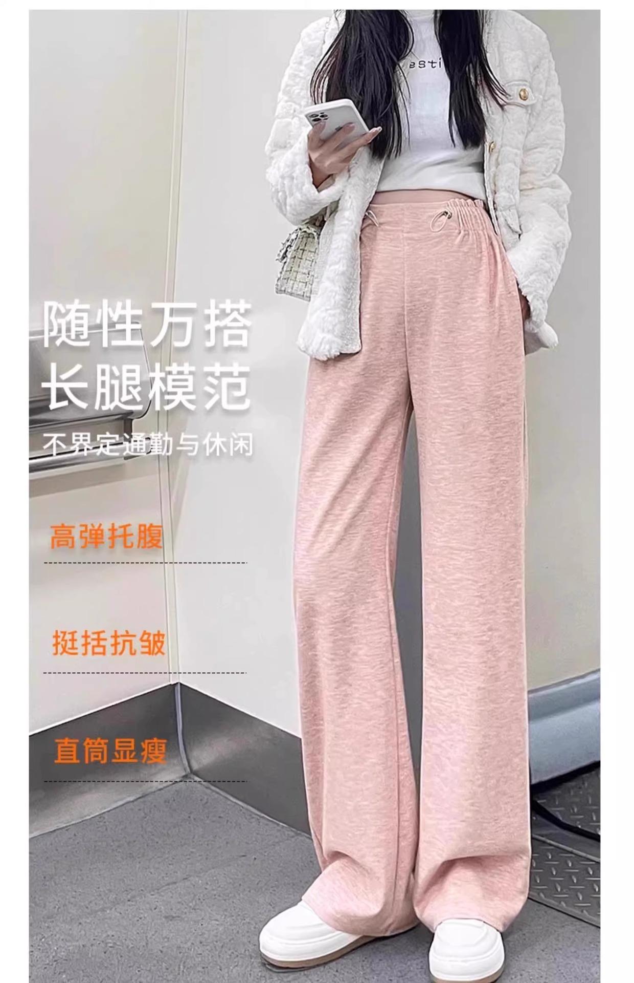Pantalones de estilo coreano para embarazadas que combinan con todo, nuevos pantalones de otoño e invierno con cordón ajustable y pierna ancha, pantalones de arroz pegajoso.
