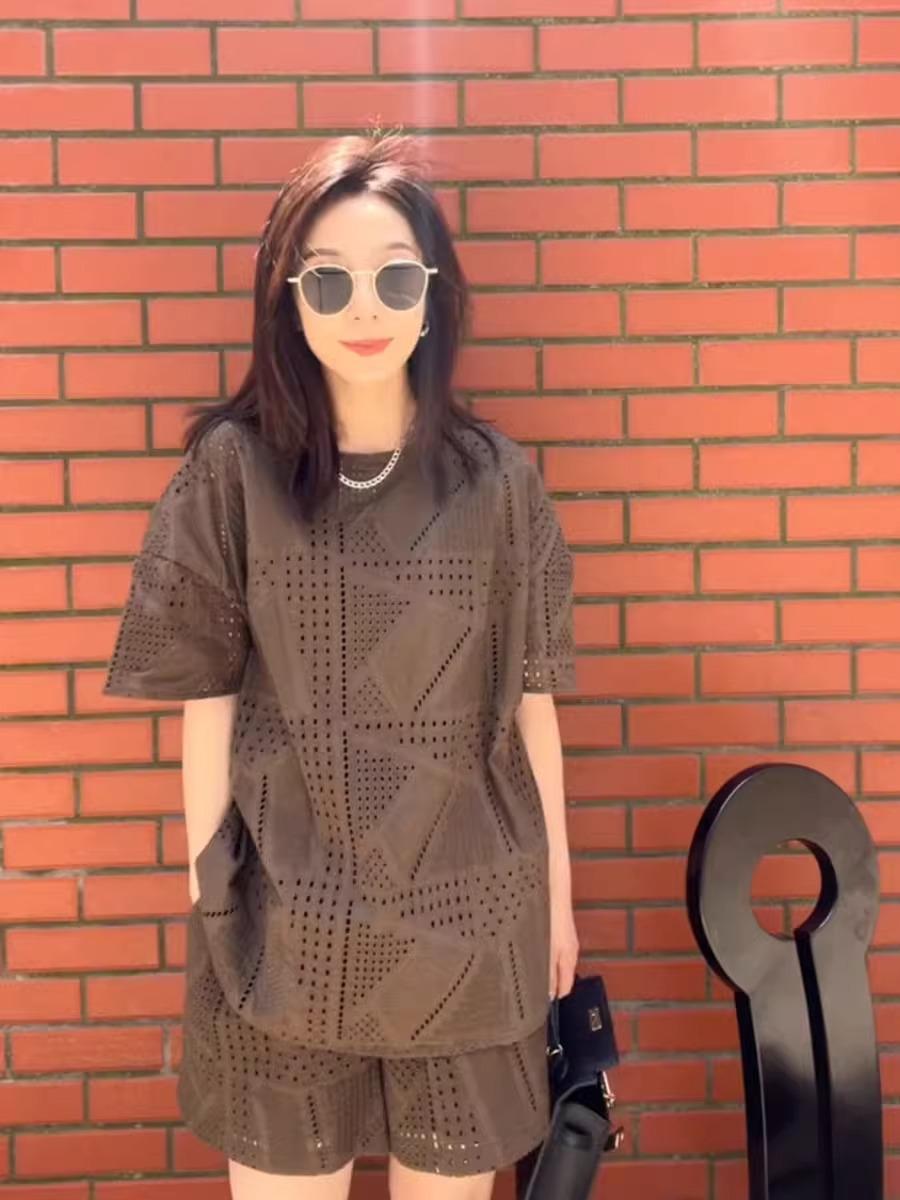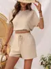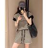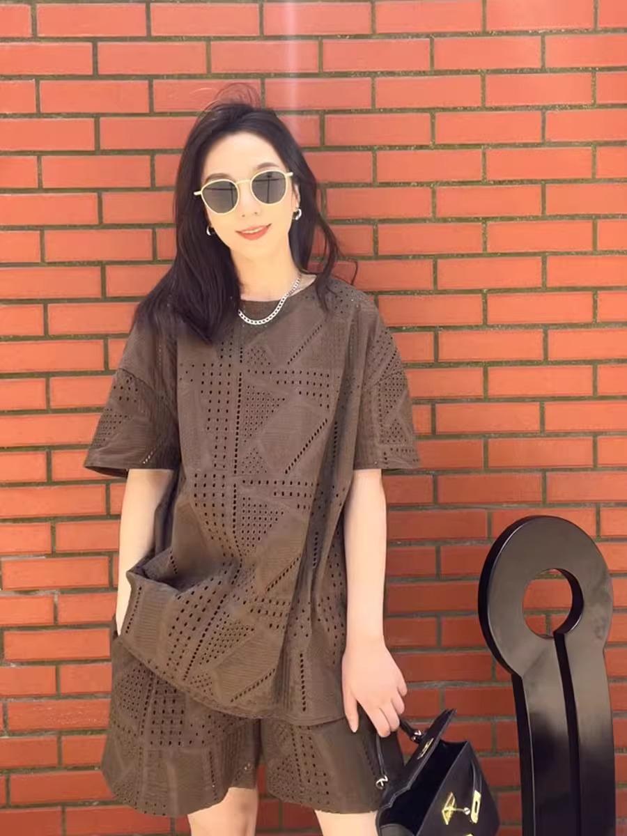 Traje de verano 2024 con diseño nuevo de nicho hueco, informal, de punto, de manga corta y pantalones cortos
