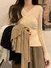 Suéter de cuello en V para mujer, otoño e invierno 2024, nueva camisa interior ajustada de manga larga, top de punto fino y ajustado negro