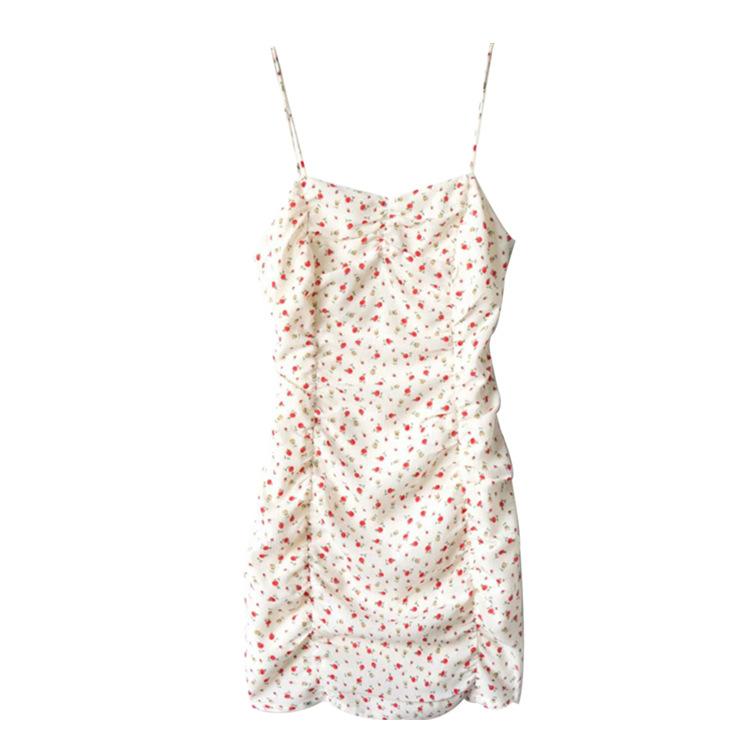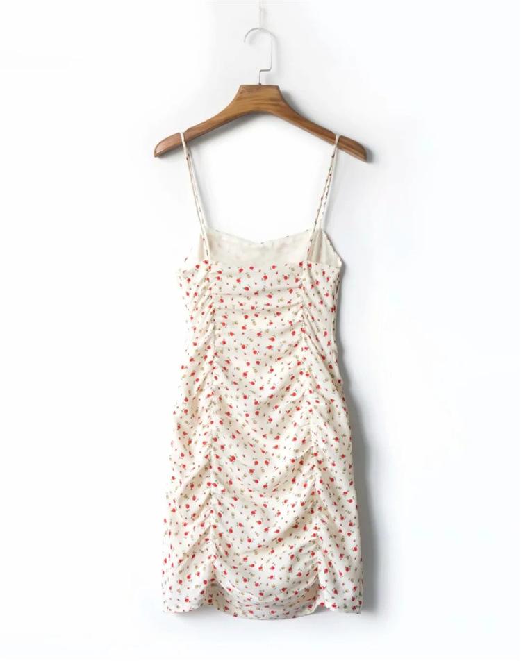 Vestido Corto de Verano Floral Plisado Ajustado para Vacaciones con Diseño Retro, Vestido Ajustado de Tirantes Espagueti, Moderno