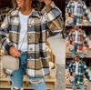 2025 Nuevo Otoño Europeo y Americano Transfronterizo para Mujer Solapa Manga Larga Sin Botones Cuadros Largo Suelto Casual Abrigo Exterior