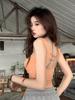 Camisola de punto con cuello halter, elegante y con lazo cruzado de celebridades de Internet, corte entallado, corta y sexy, estilo Spice Girl.