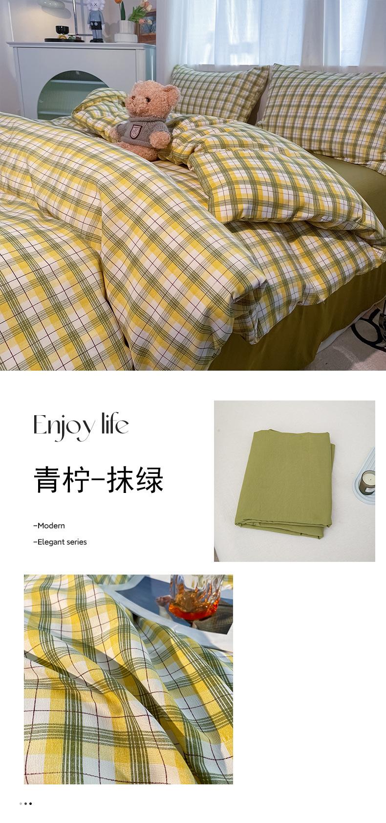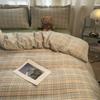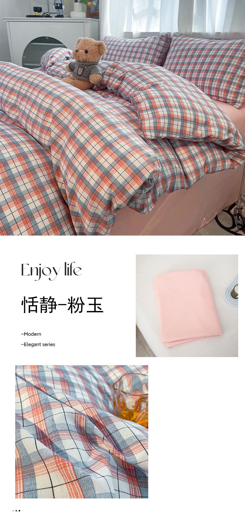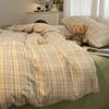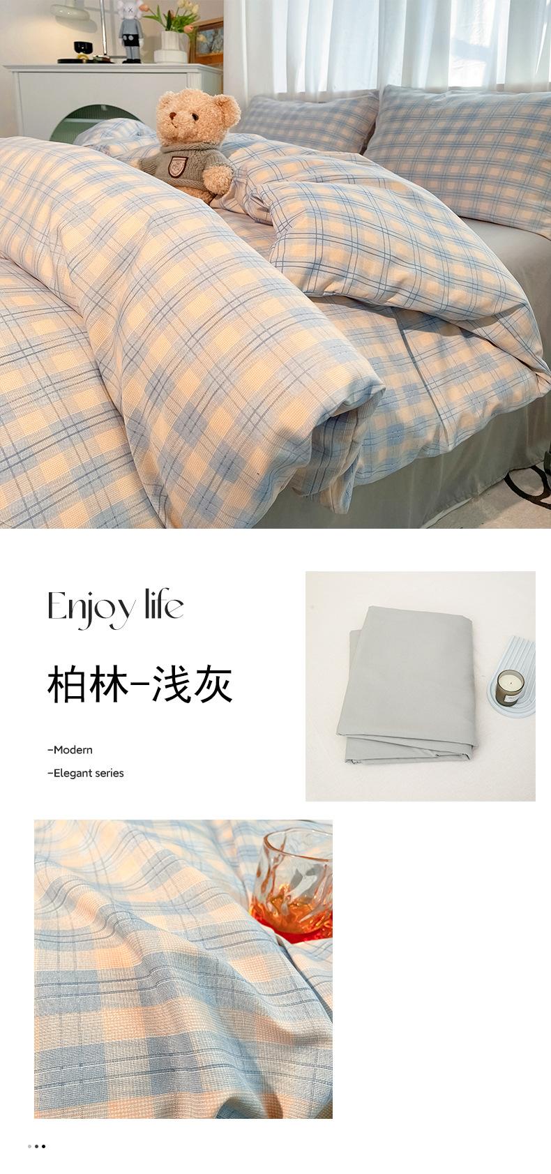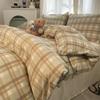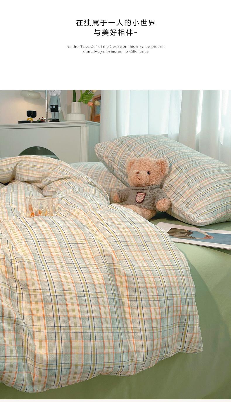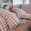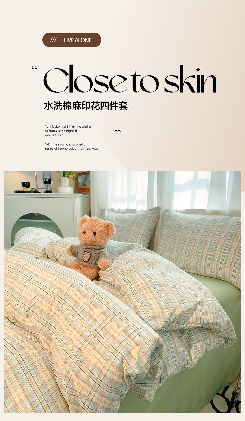 2023 nuevo estilo japonés sin estampado de algodón lavado y lino cama de cuatro piezas edredón cubierta a cuadros sábana de cama de tres piezas sábana ajustable 3