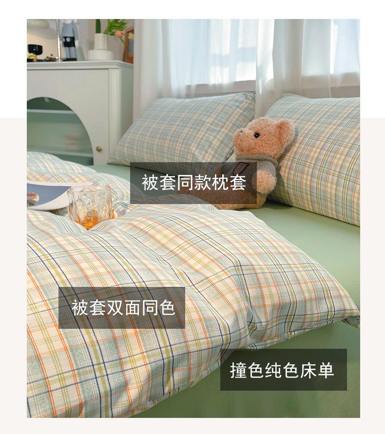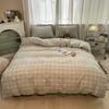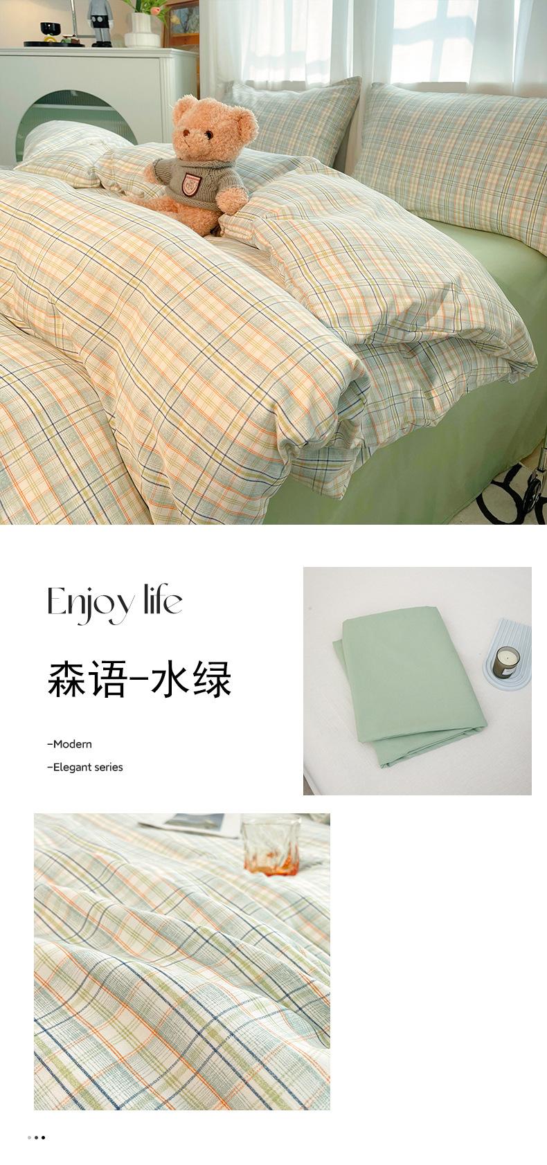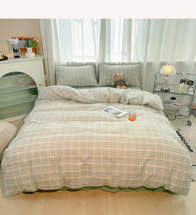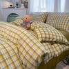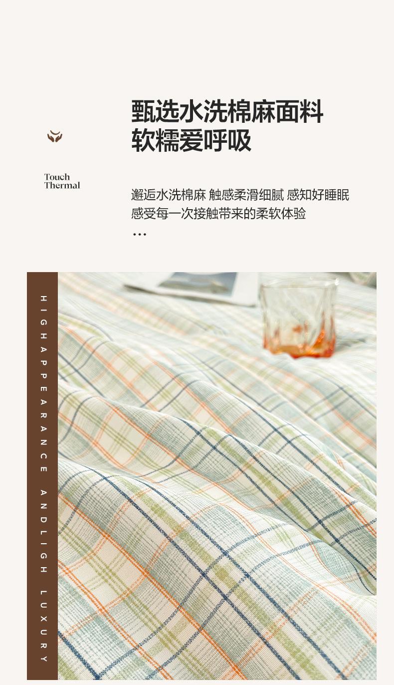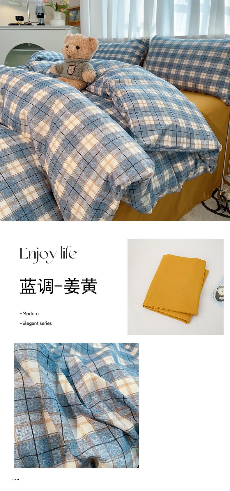 2023 nuevo estilo japonés sin estampado de algodón lavado y lino cama de cuatro piezas edredón cubierta a cuadros sábana de cama de tres piezas sábana ajustable 3