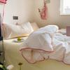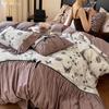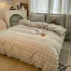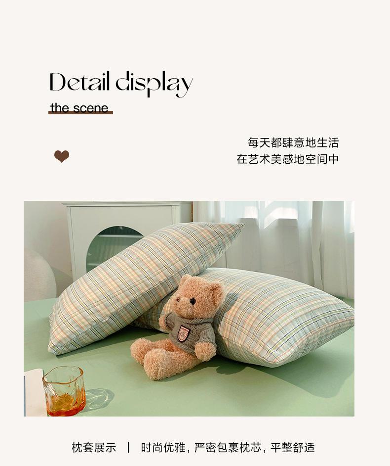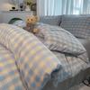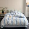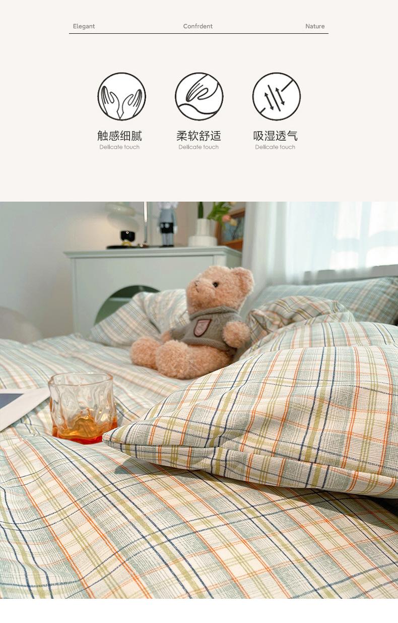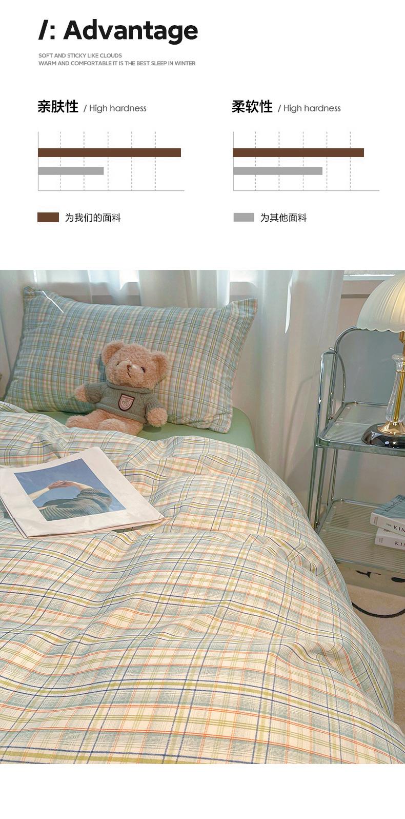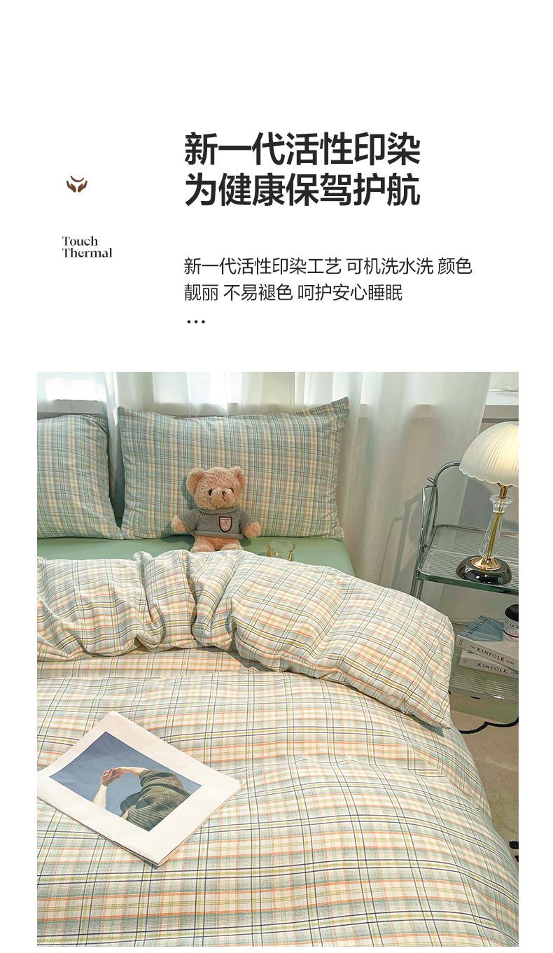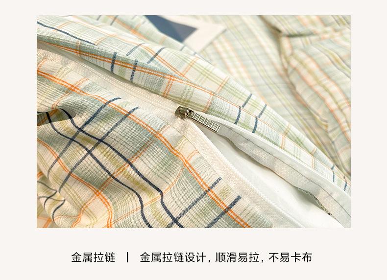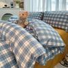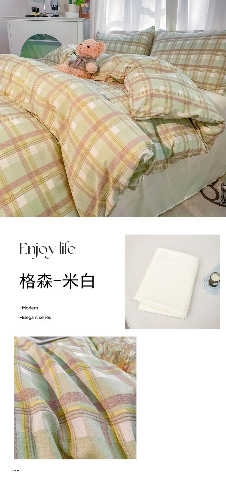 2023 nuevo estilo japonés sin estampado de algodón lavado y lino cama de cuatro piezas edredón cubierta a cuadros sábana de cama de tres piezas sábana ajustable 3