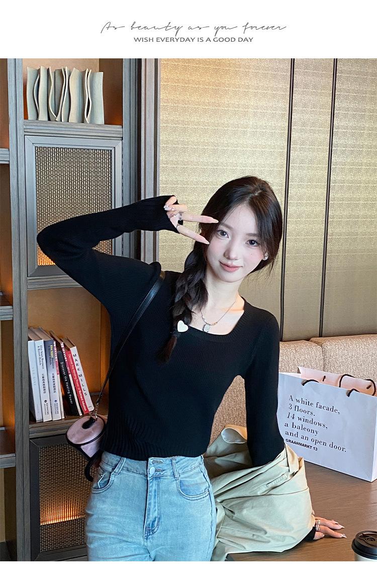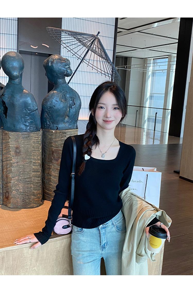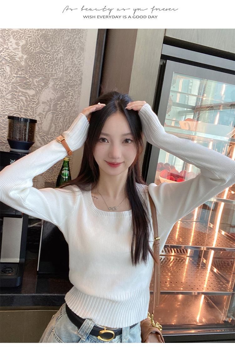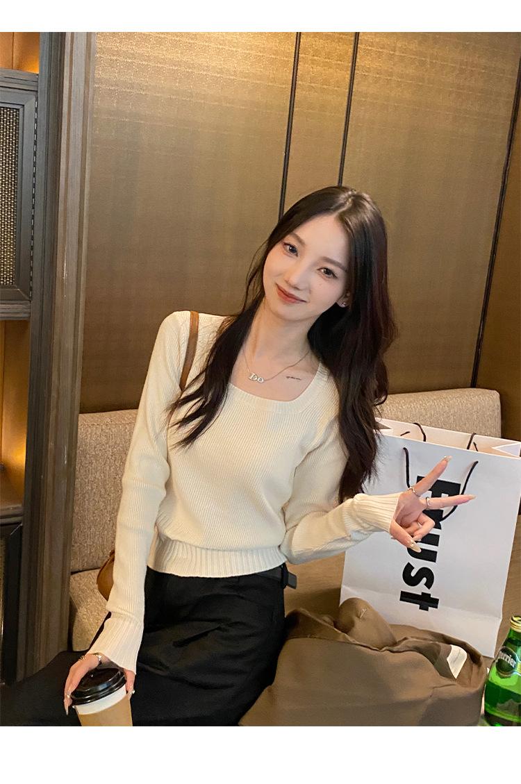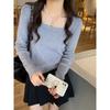 Suéter corto ajustado con cuello cuadrado para mujer, jersey de punto fino para principios de otoño