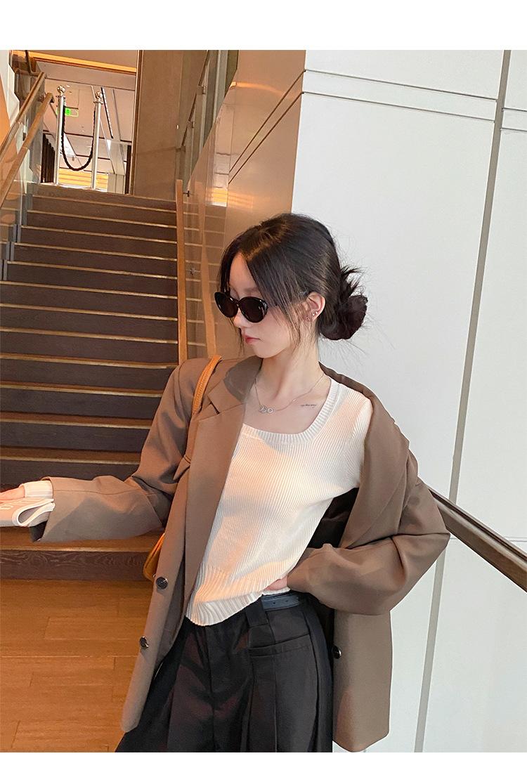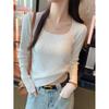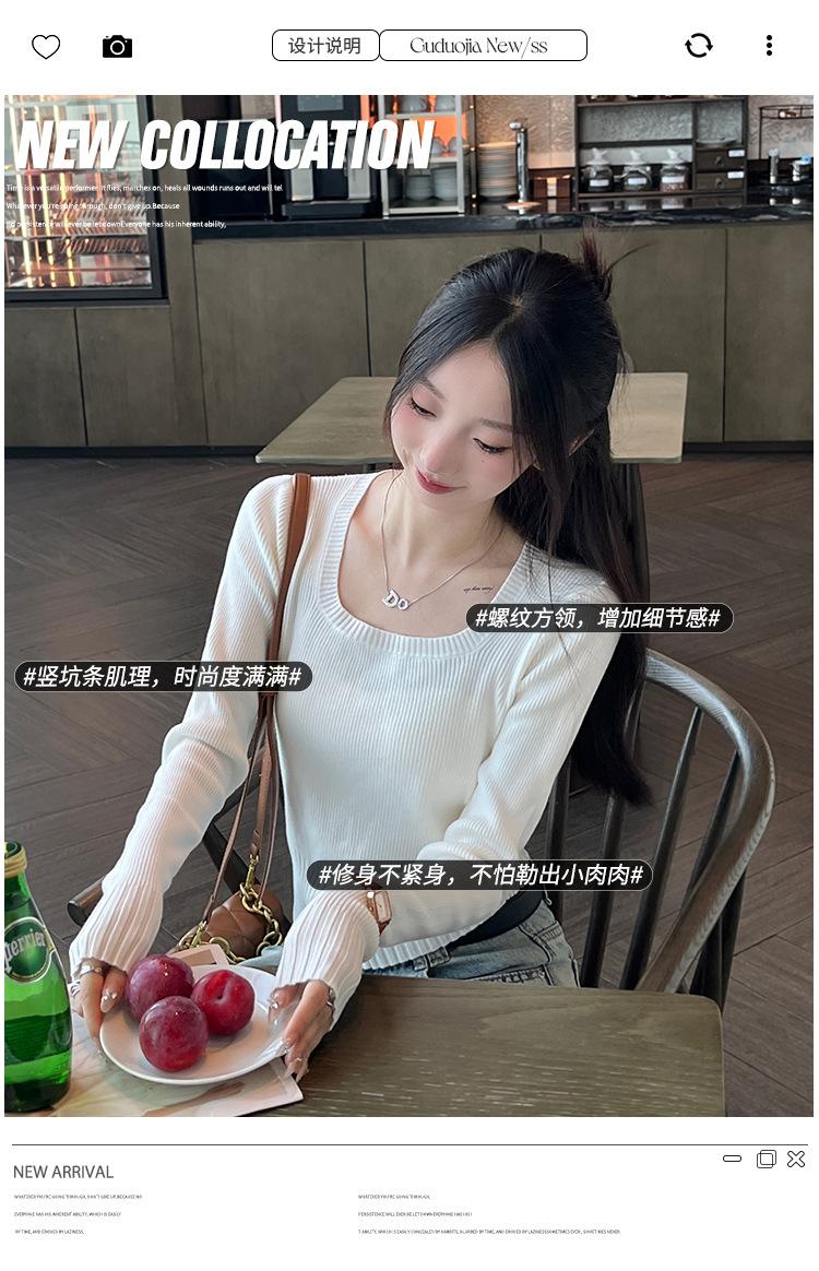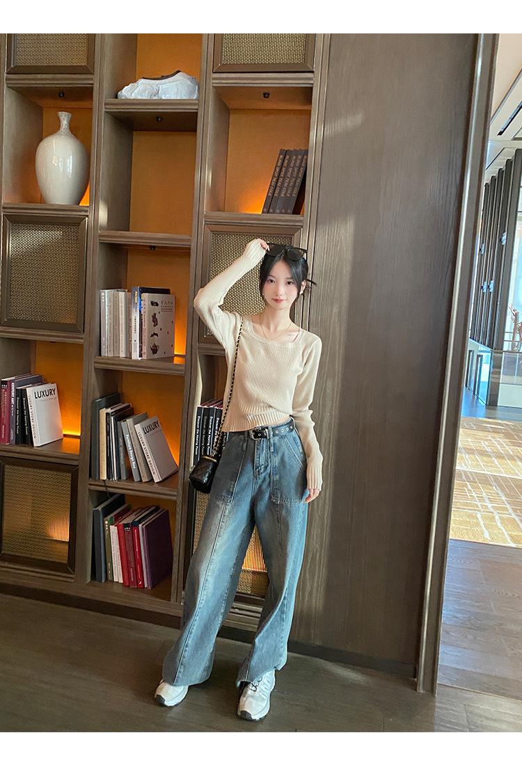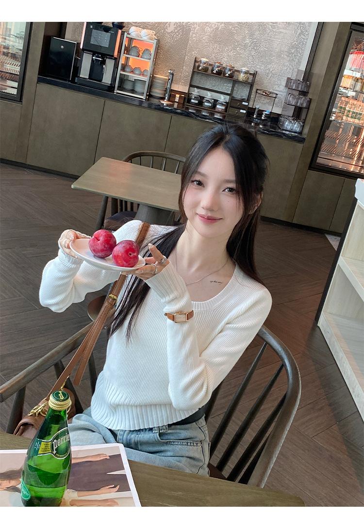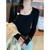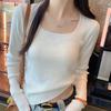Suéter corto ajustado con cuello cuadrado para mujer, jersey de punto fino para principios de otoño