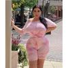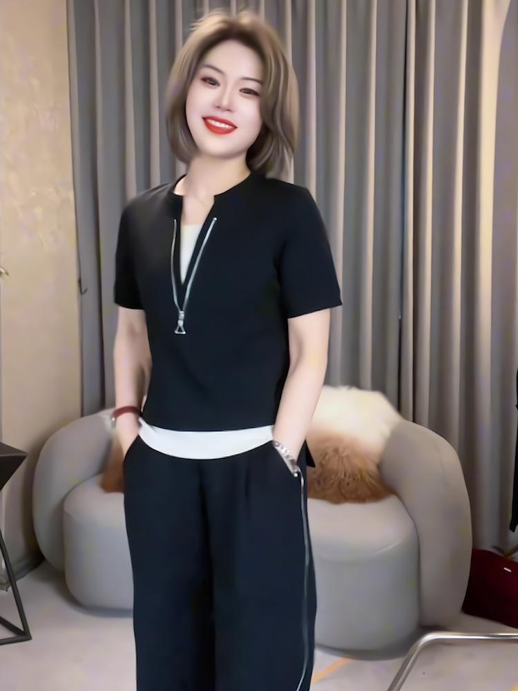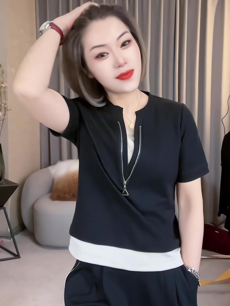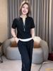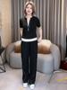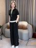Traje informal de mujer, verano 2024, nuevo, negro, cuello redondo, suelto, manga corta, top de dos piezas para mujer