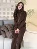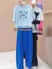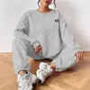 Conjunto de Dos Piezas Tejido de Punto con Estampado de Letras para Comercio Exterior de Primavera y Otoño para Mujer, Cómodo y Deportivo, Set Casual de Moda Europea y Americana Transfronteriza