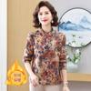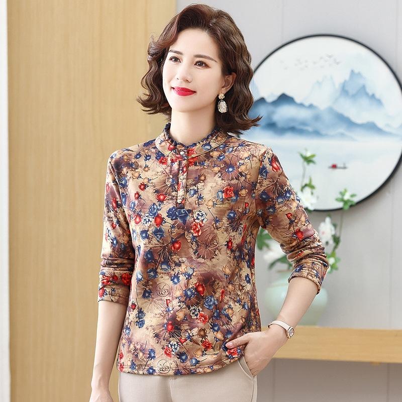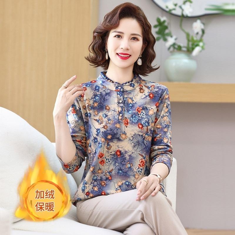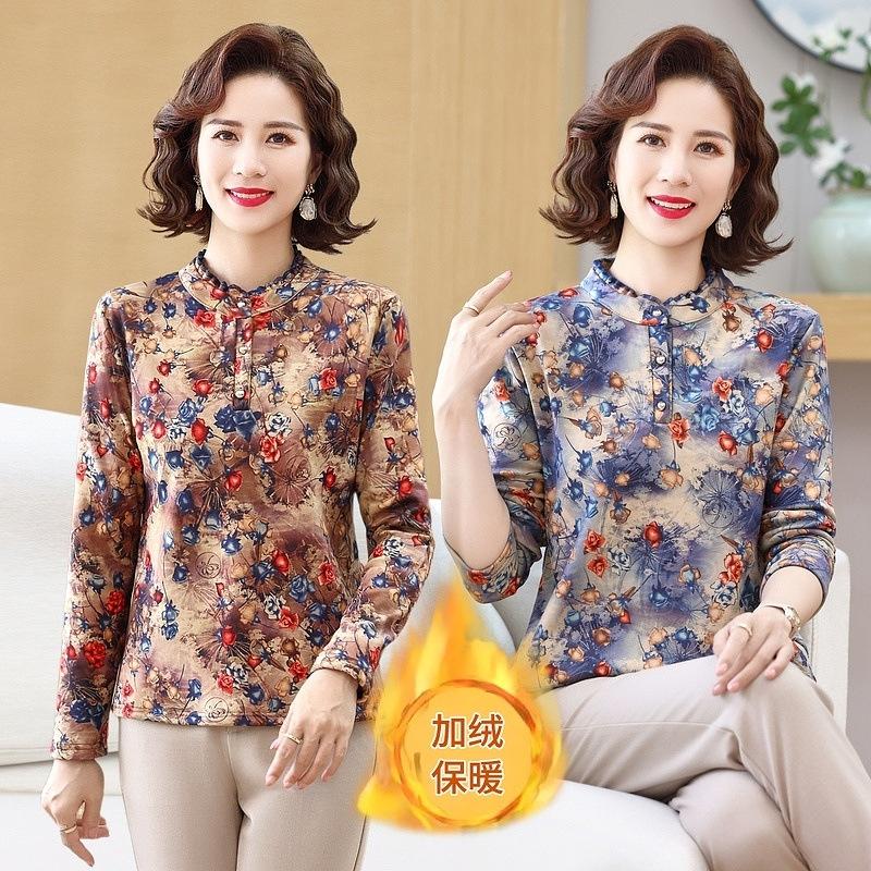 Camiseta de otoño e invierno 2024 para mujer, de manga larga, con temperamento a la moda, con forro polar floral, cálida, para madres