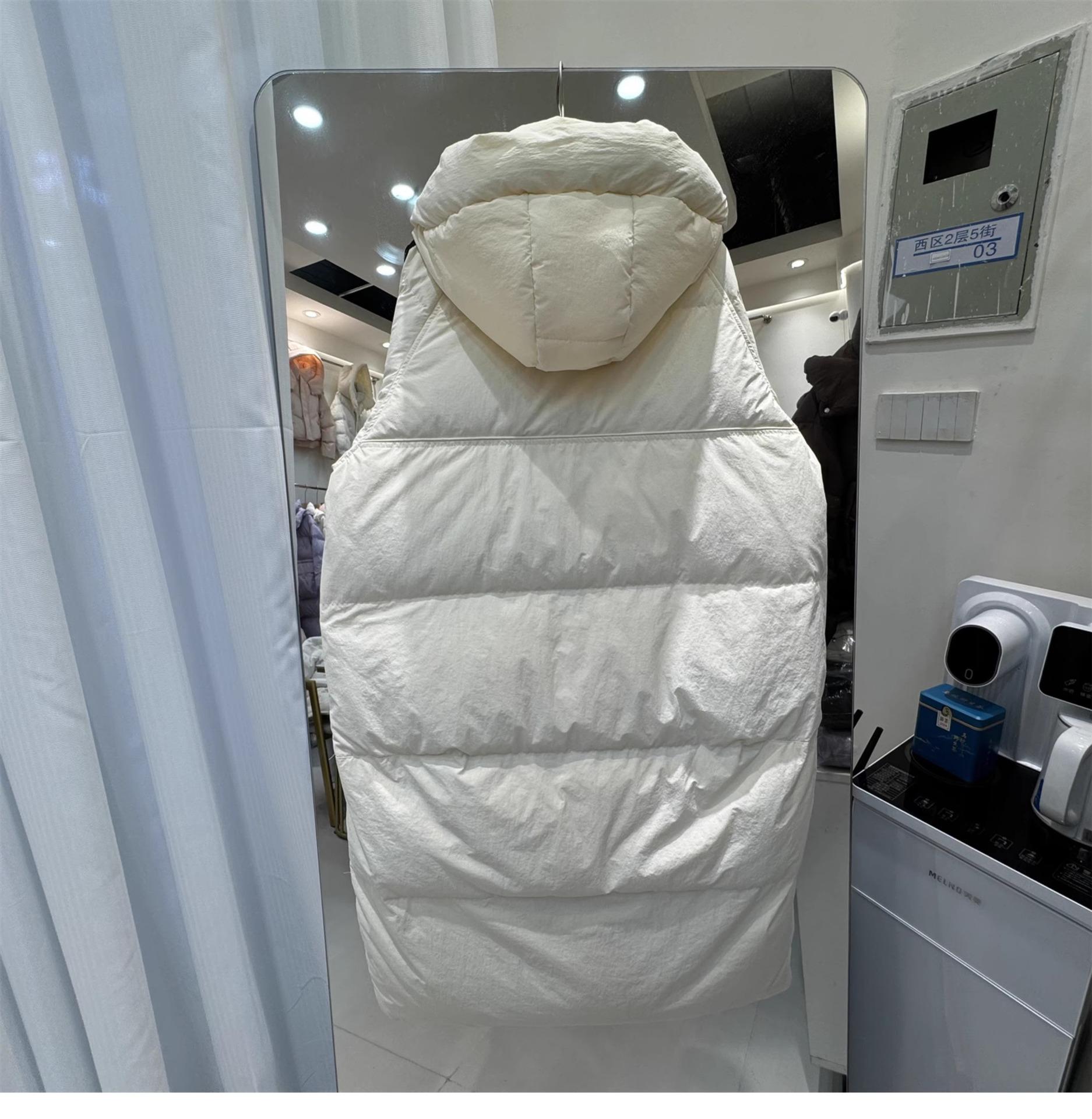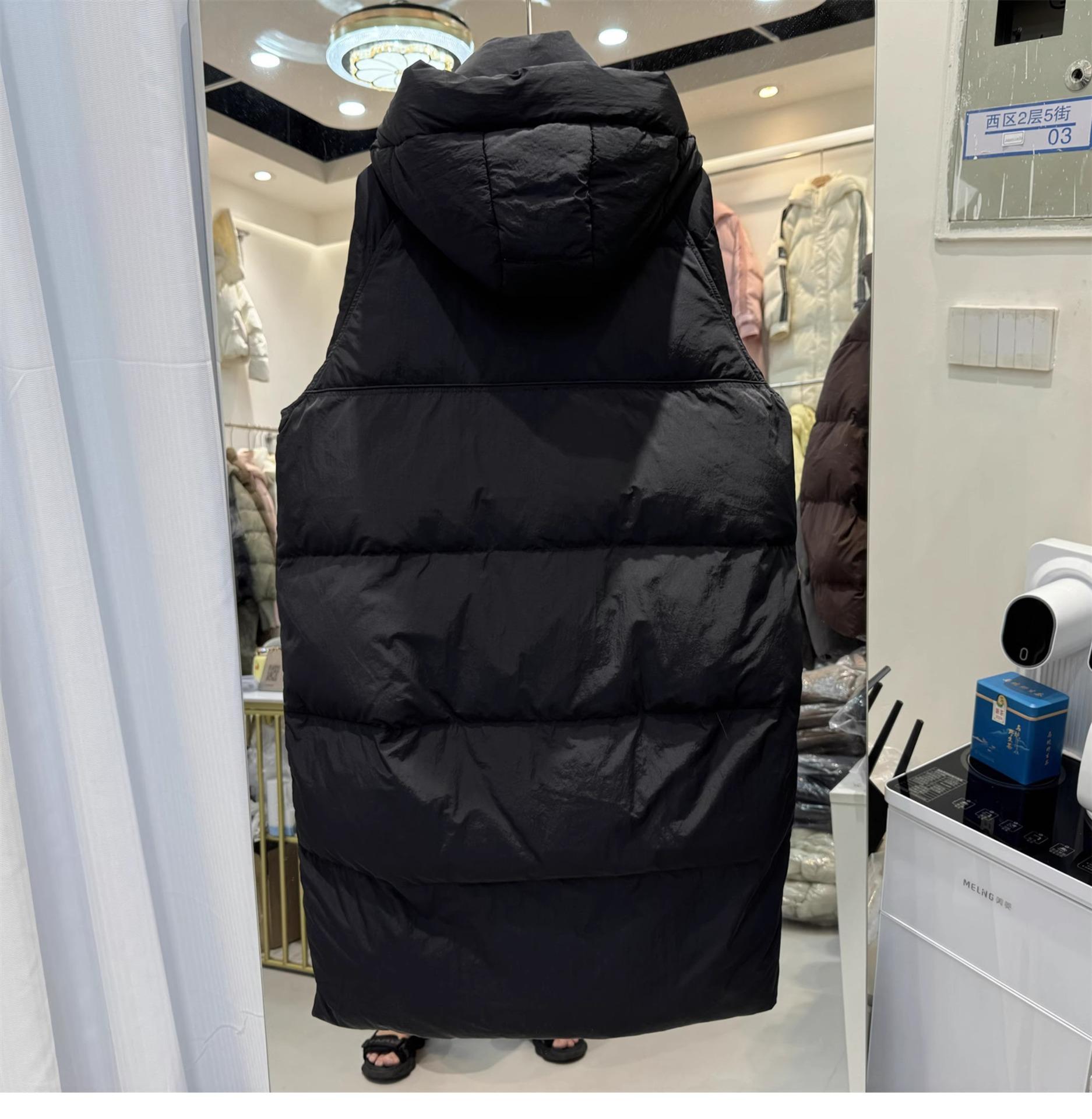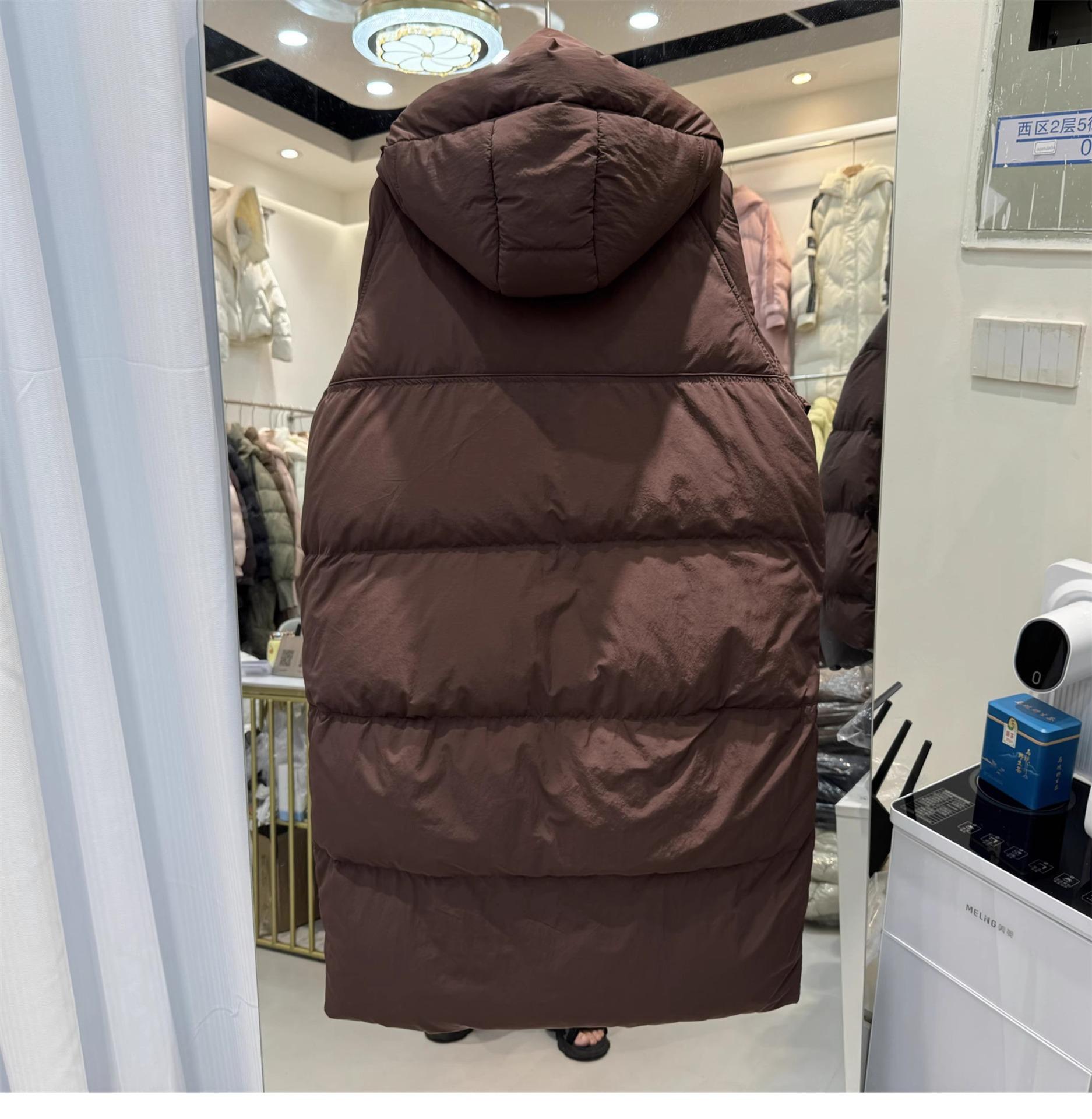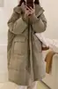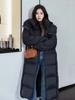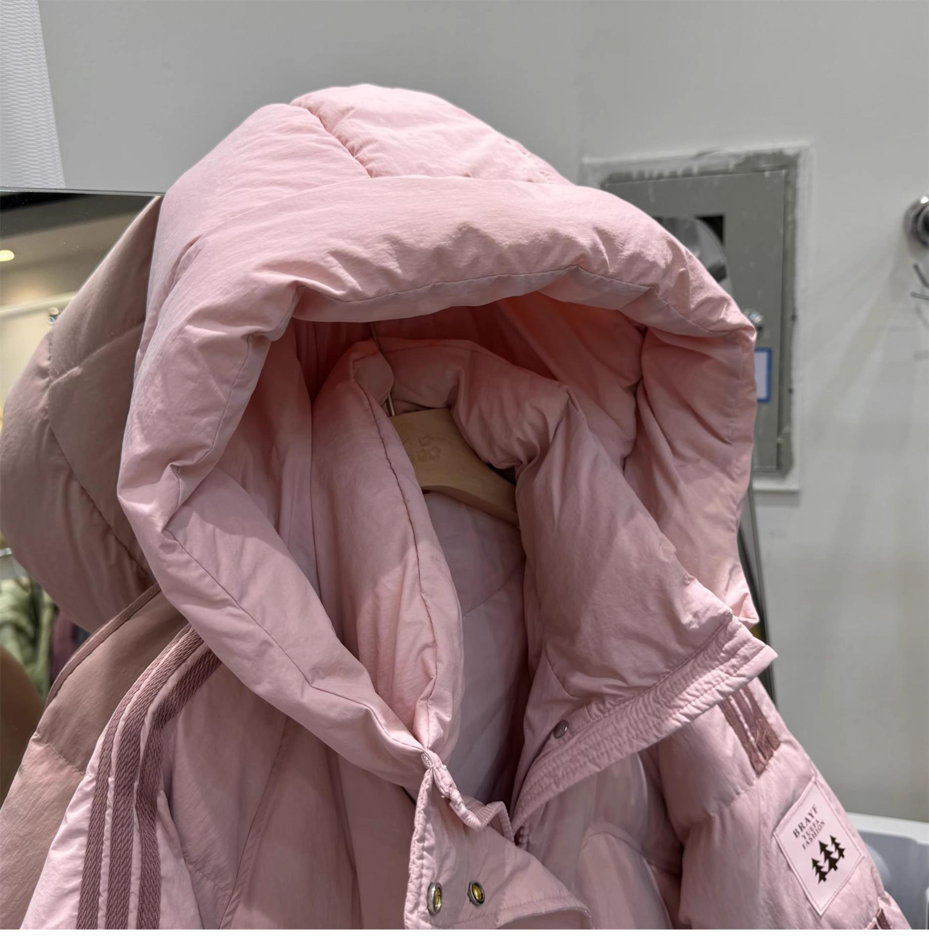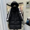 Invierno 2025 Nuevo Chaqueta Larga Acolchada con Capucha para Mujer Sobre la Rodilla Deportiva a Rayas Tres Árboles Gruesa Suelta Abrigo de Plumón de Pato