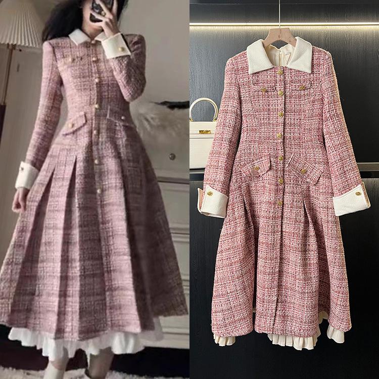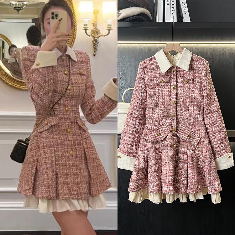 Vestido de estilo francés de alta gama estilo Chanel con flores gruesas para mujer, primavera y otoño, ligero, de lujo, estilo corte elegante y ajustado.