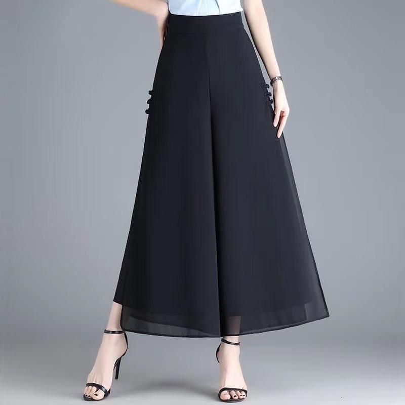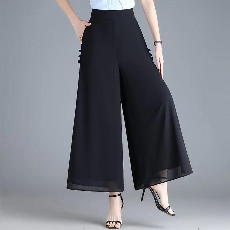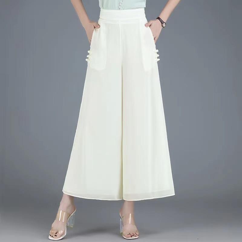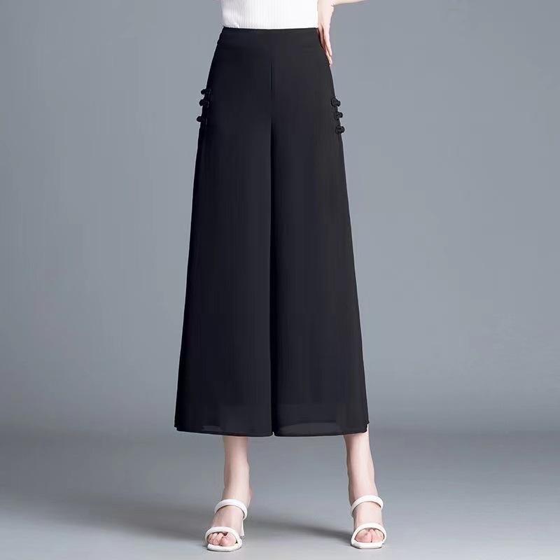 Pantalones de Moda de Pierna Ancha Cintura Alta para Mujer 2024 Sueltos Verano Dape Nueva Llegada Chifón Nueve Puntos Pantalones Casuales Delgados