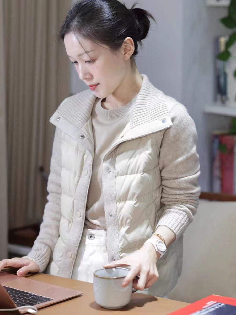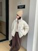 Chaqueta corta acolchada de algodón para mujer, otoño e invierno 2024, nuevo diseño, costura de punto, cuello en V, abrigo cálido, chaqueta acolchada de algodón de corte ajustado