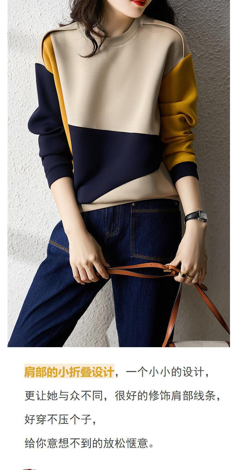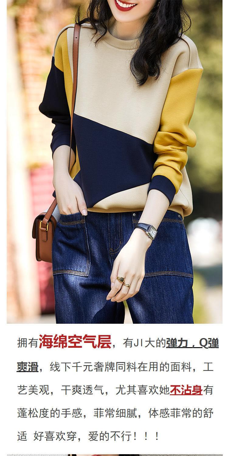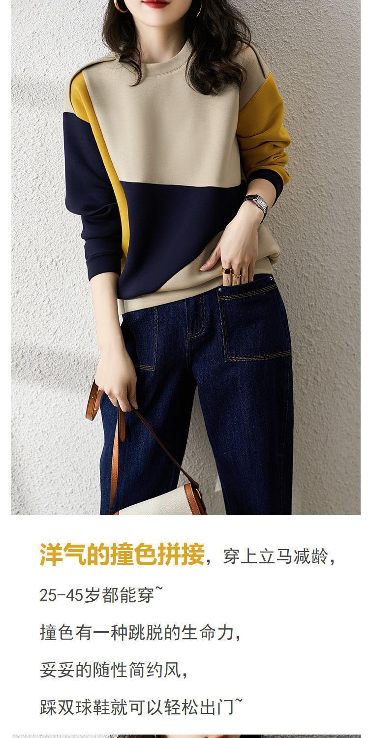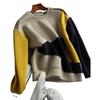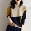 Sudadera de Manga Larga con Bloques de Color para Mujer Jersey Cuello Redondo 2025 Nuevo Primavera y Otoño Delgada Suelta Jersey Adelgazante Look Sudadera Color Contraste