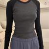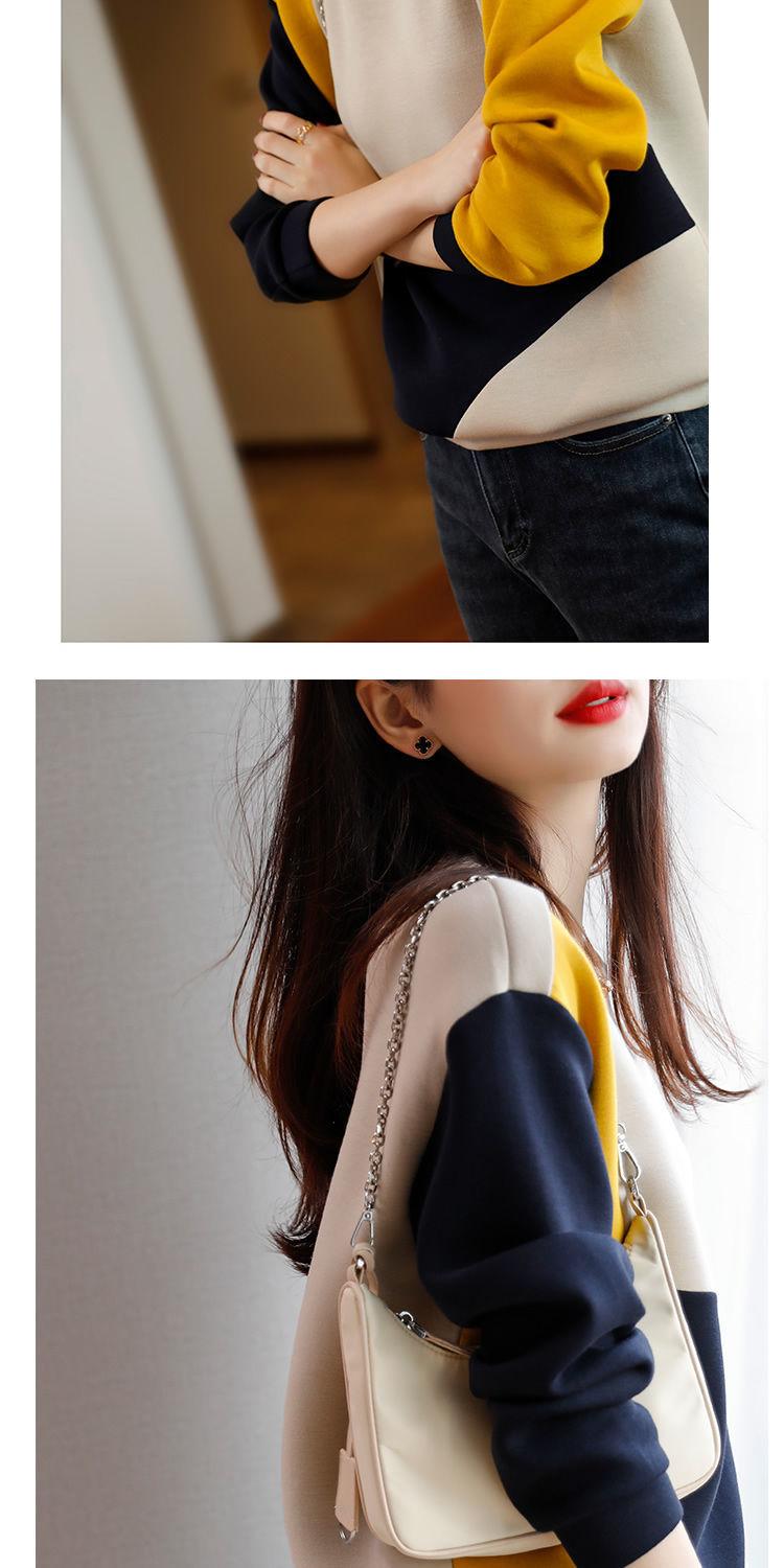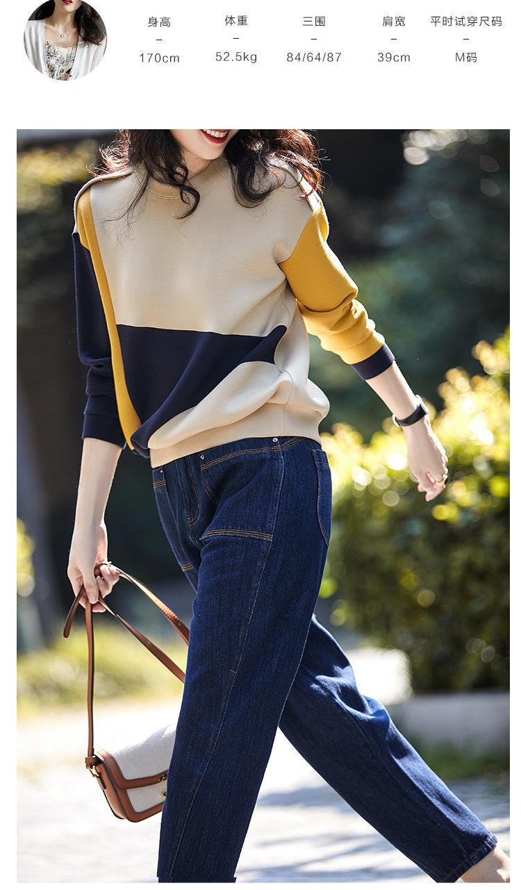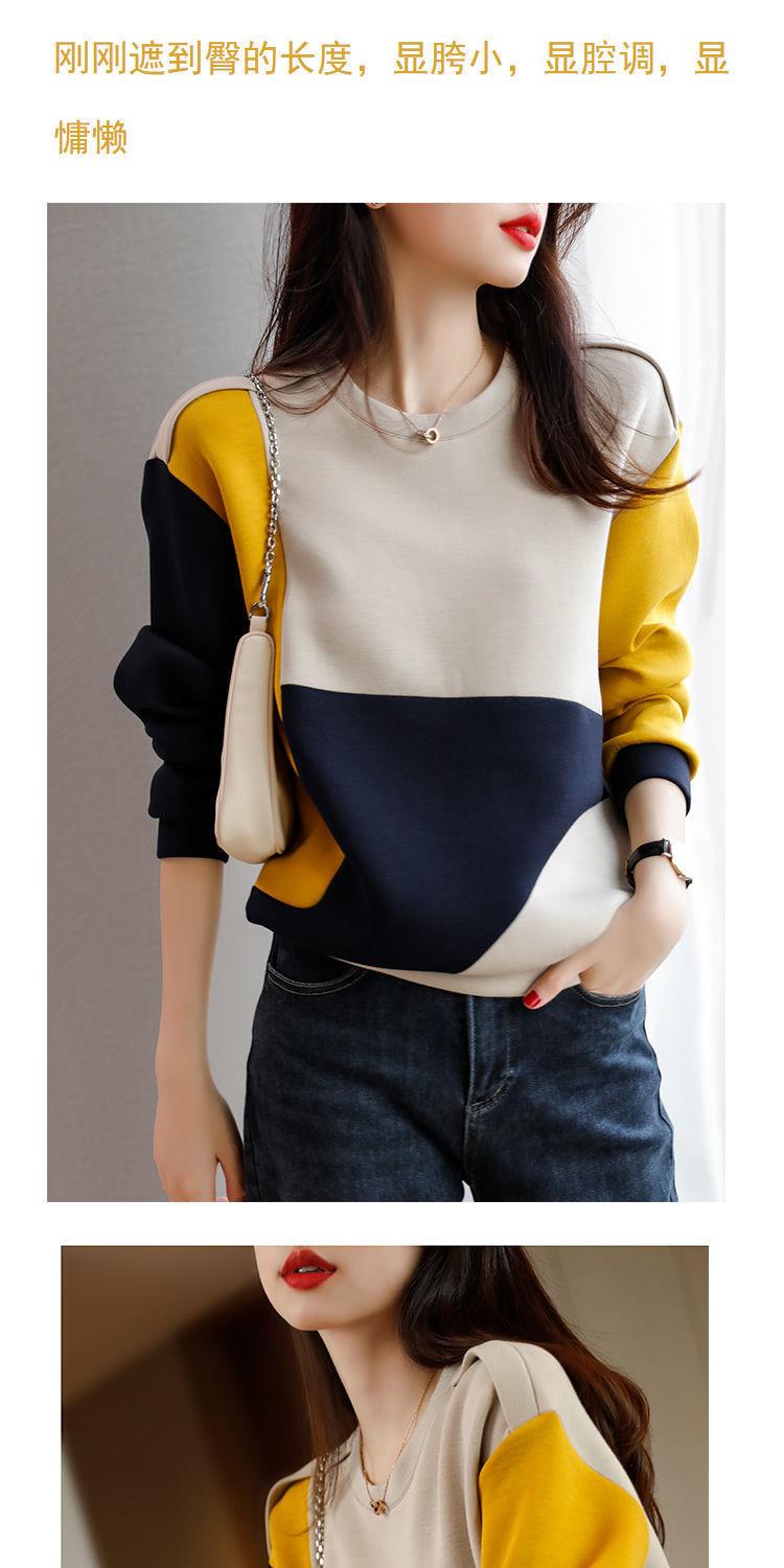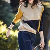 Sudadera de Manga Larga con Bloques de Color para Mujer Jersey Cuello Redondo 2025 Nuevo Primavera y Otoño Delgada Suelta Jersey Adelgazante Look Sudadera Color Contraste