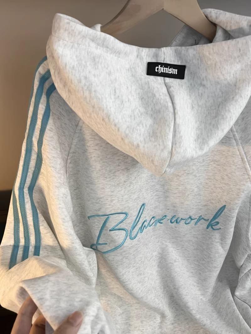 Suéter grueso con capucha y letras bordadas para hombre y mujer, otoño e invierno 2024, nueva sudadera holgada de moda nacional para parejas