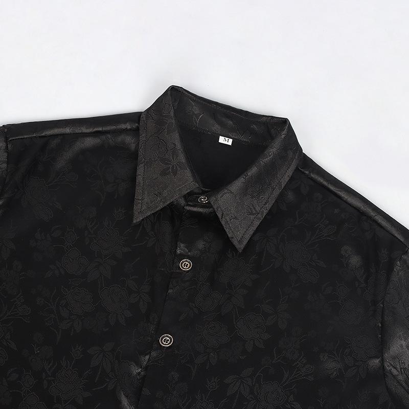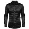 Camisa para hombre de negocios para hombre de comercio exterior de seda satén camisa de vestir jacquard manga larga floral camisa de botones