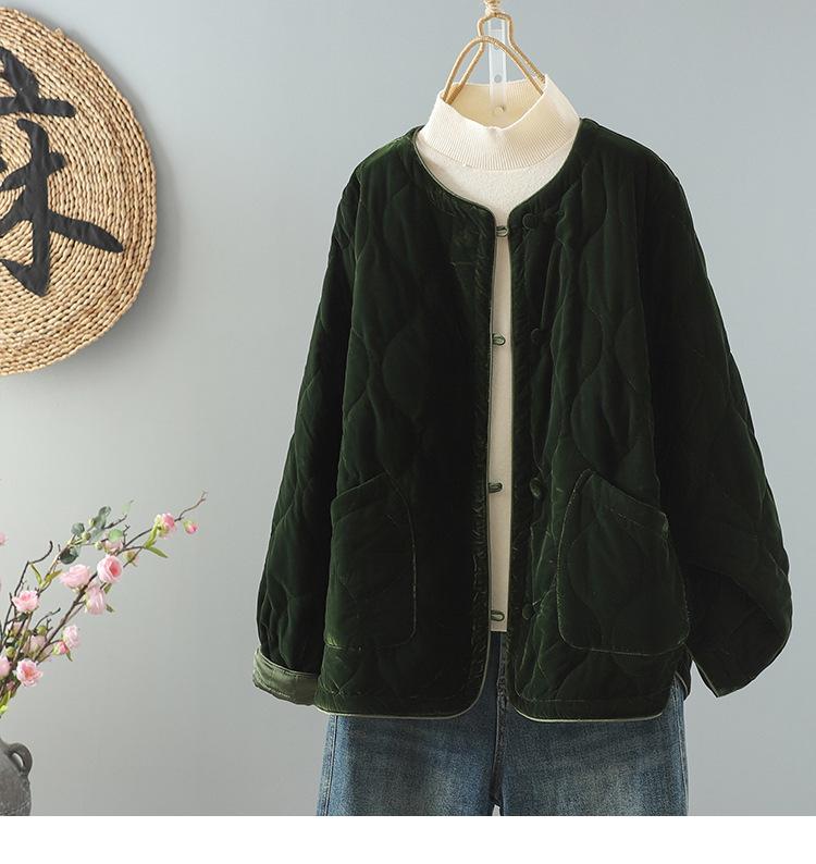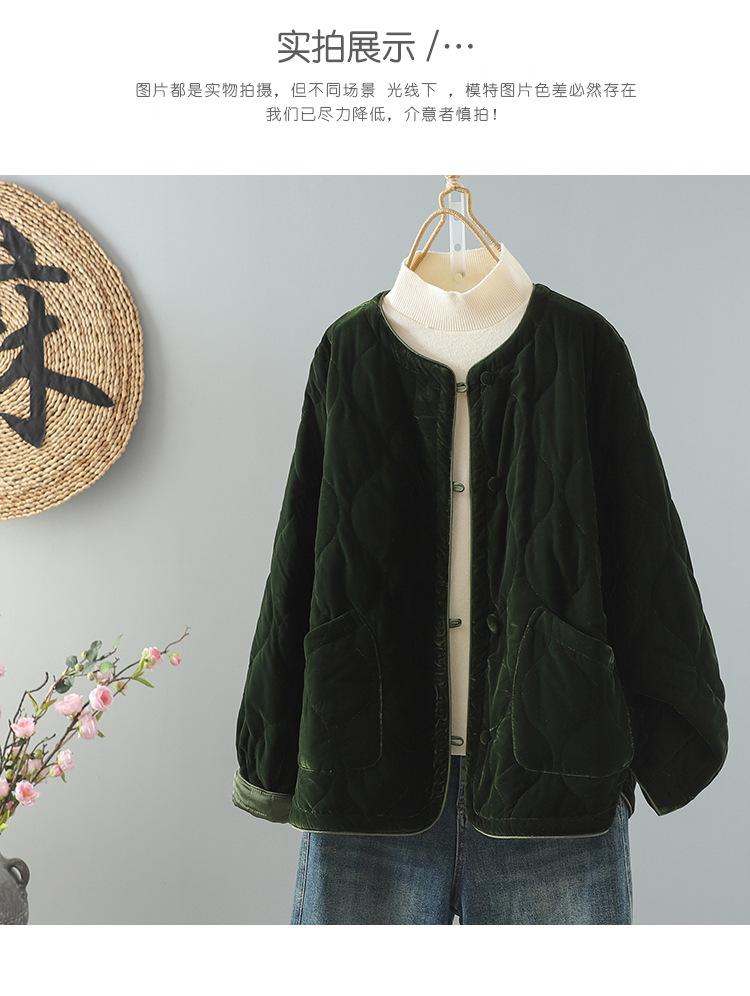 Compra Chaqueta acolchada de algodón informal retro de invierno 2024, nueva, de cuello redondo, holgada, corta y cálida. al por mayor en Joom.pro