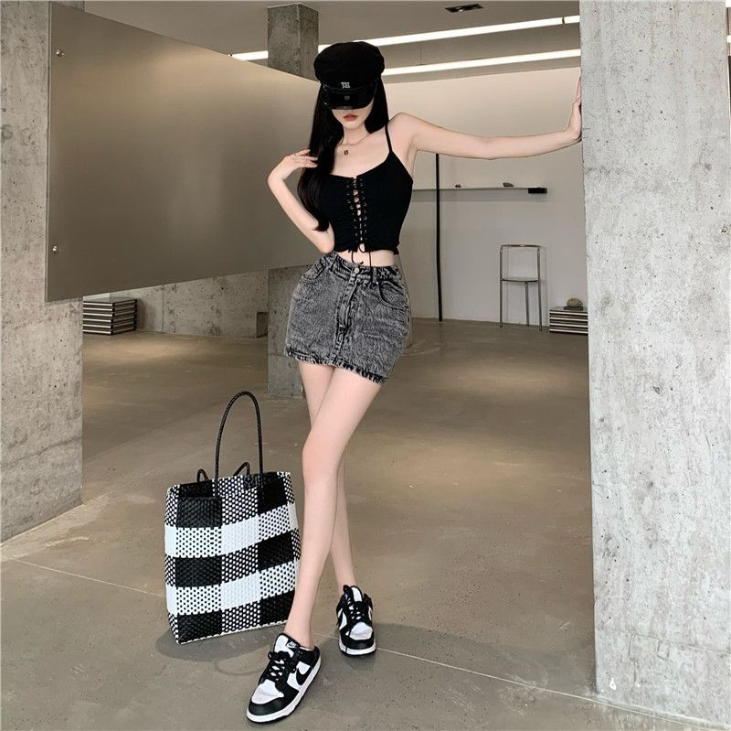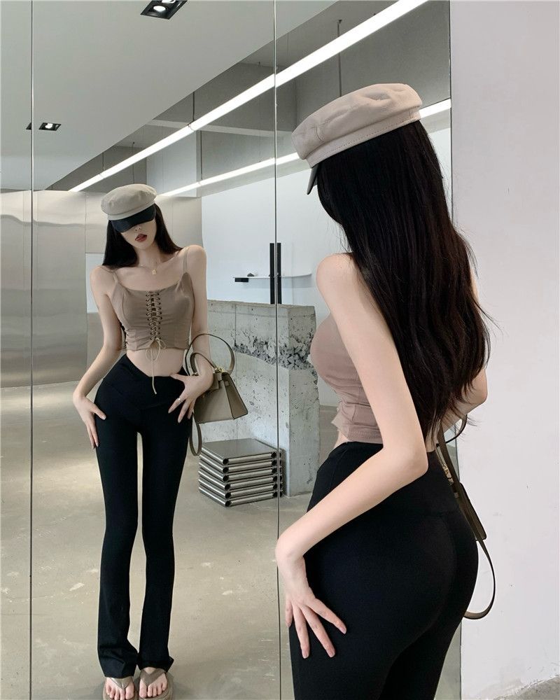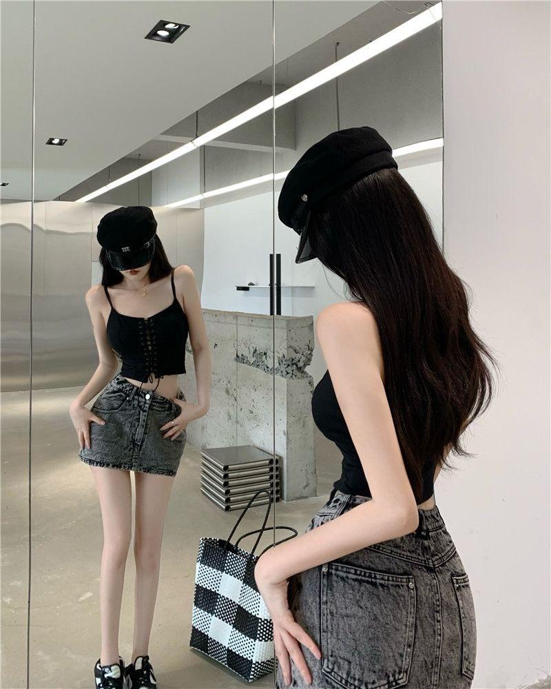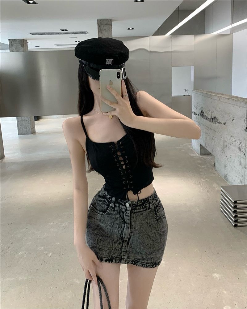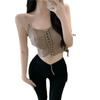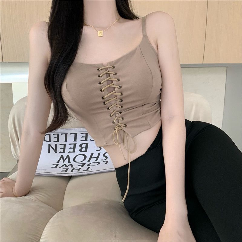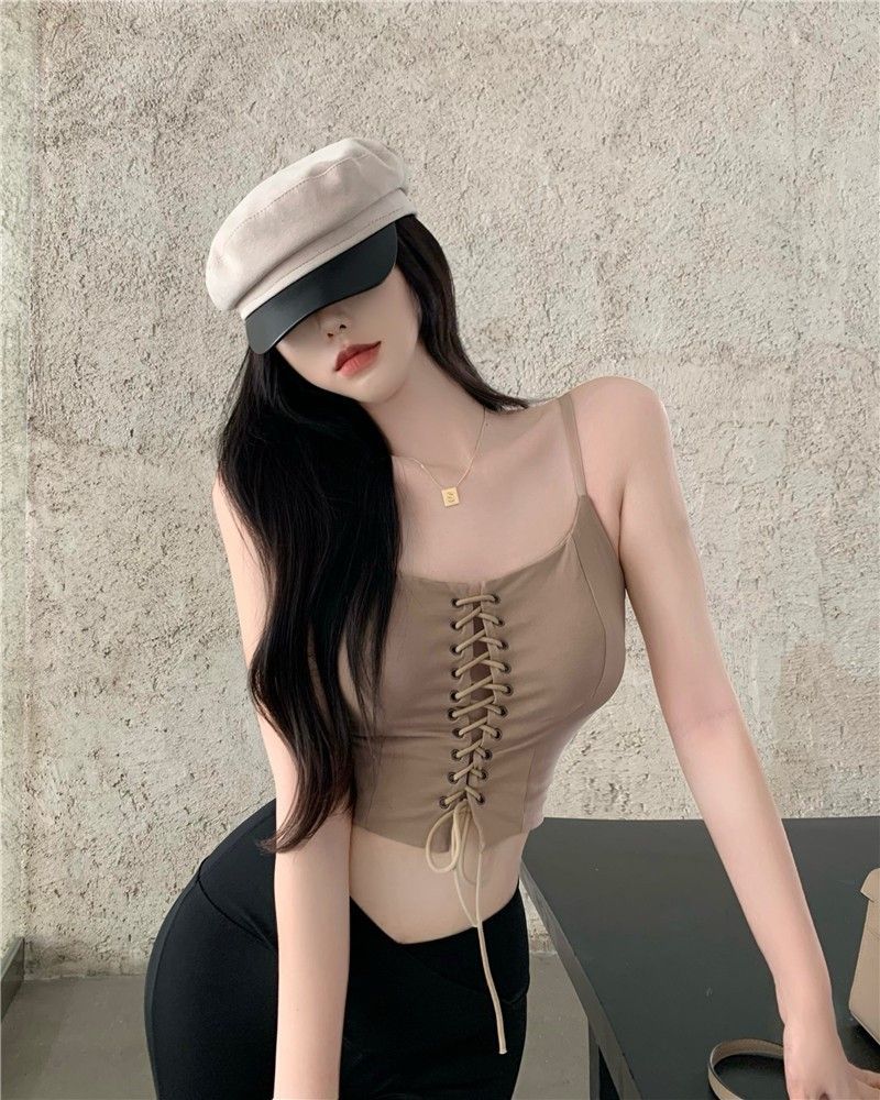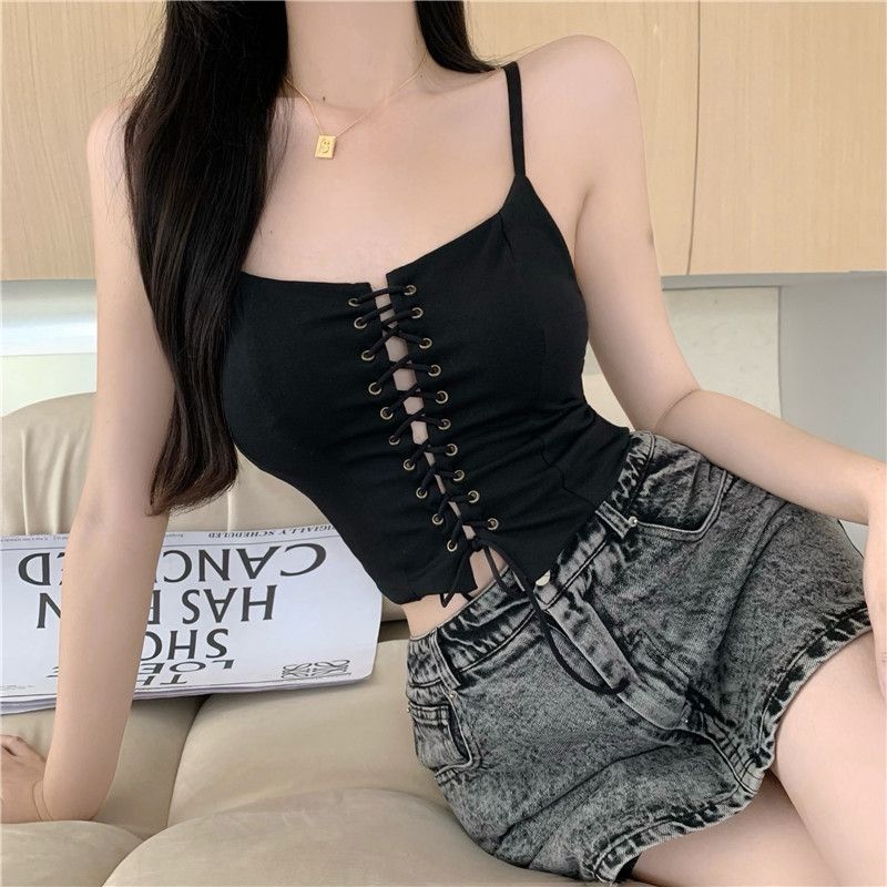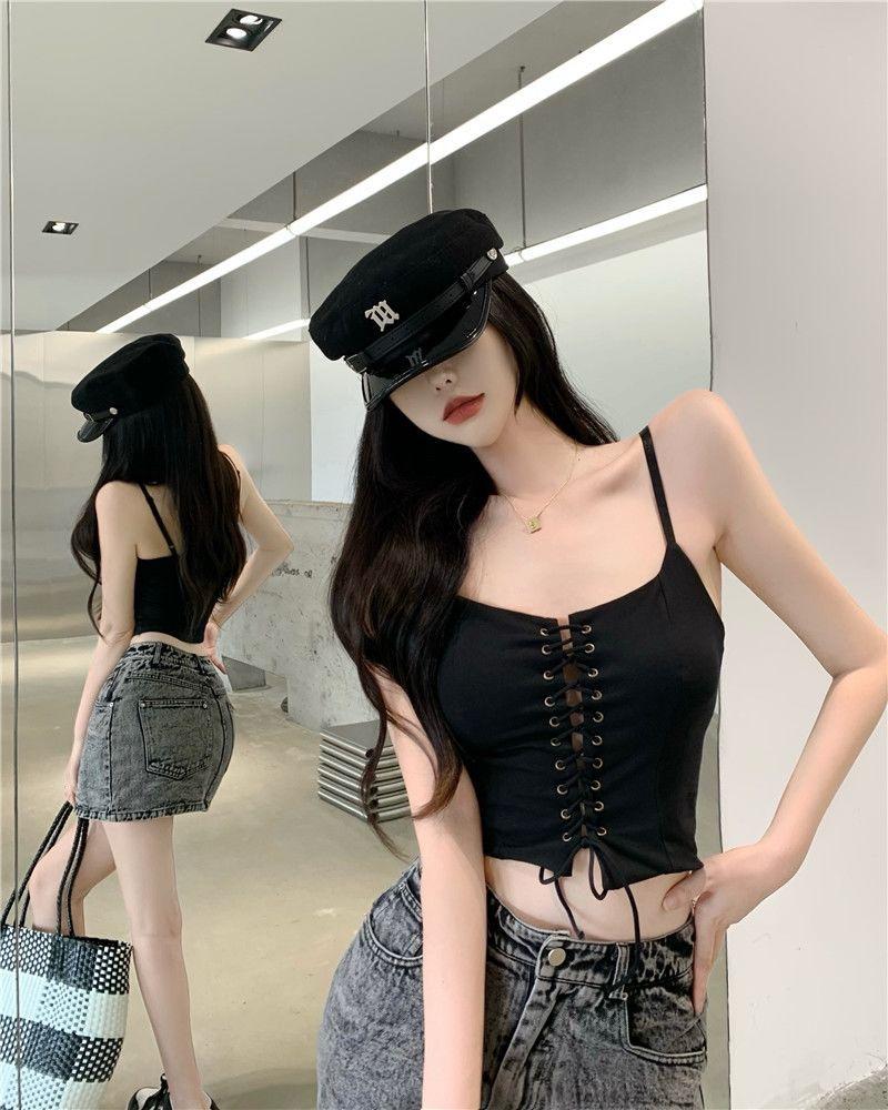 Chaleco corto estilo coreano sexy para mujer, estilo discoteca, ajustado, con diseño de tirantes pequeños, para uso exterior