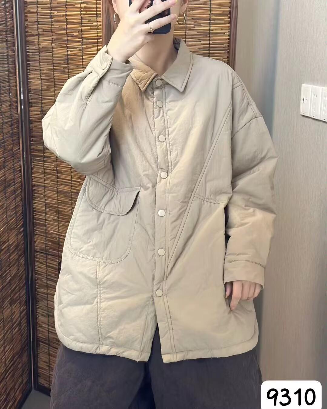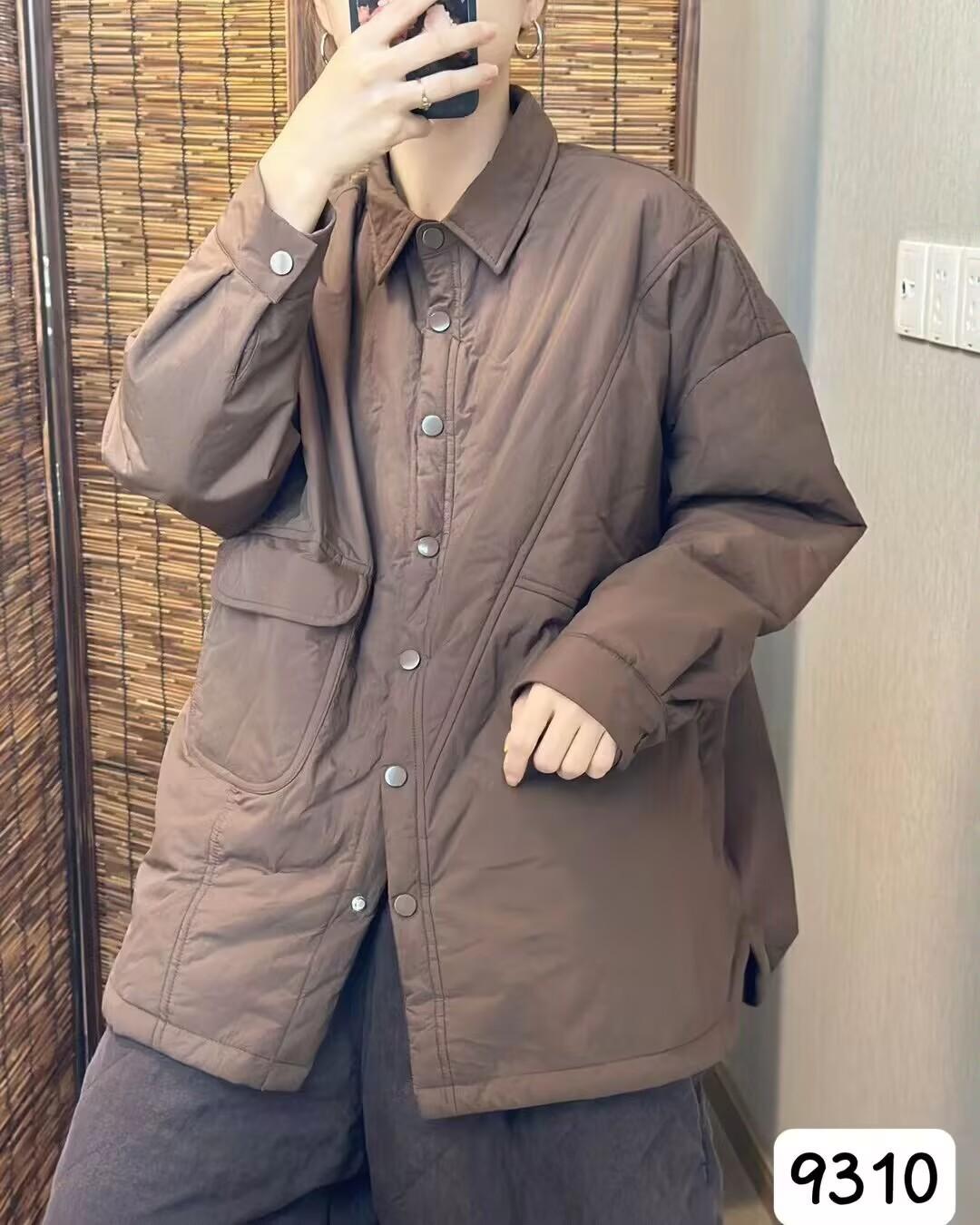 Chaqueta acolchada de algodón para mujer, abrigo de invierno nuevo estilo coreano con solapa, costuras casuales, camisa acolchada holgada y cálida, chaqueta acolchada de algodón 9310