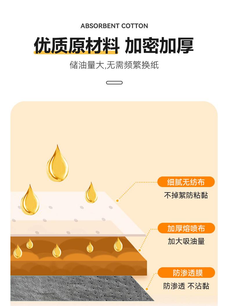 Venta al por mayor de algodón absorbente de aceite gris para campana extractora de cocina, aislamiento térmico a prueba de aceite y polvo, adhesivo a prueba de aceite, almohadilla a prueba de polvo y almohadilla a prueba de aceite.