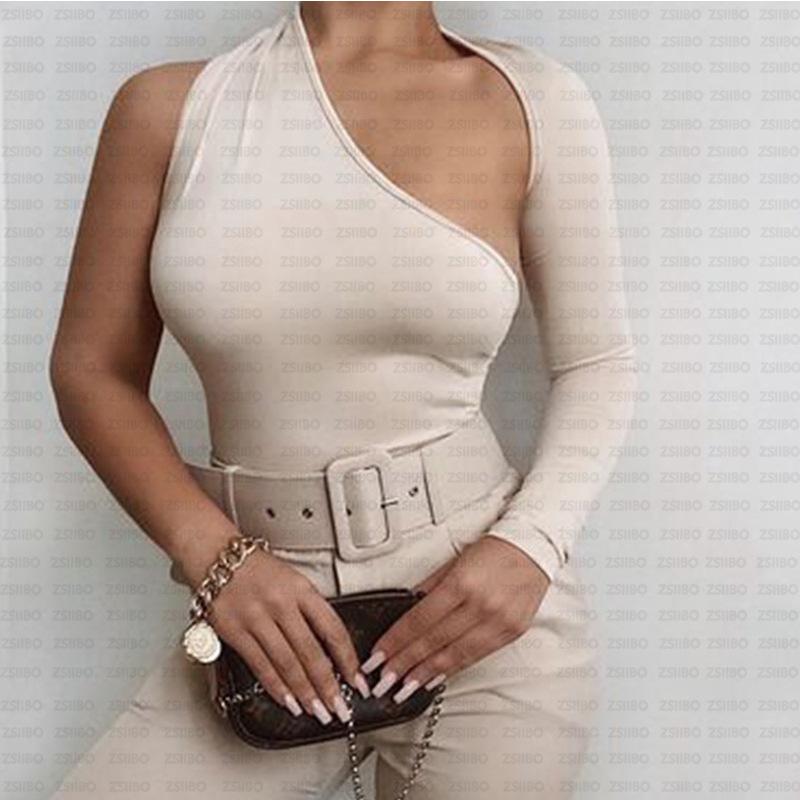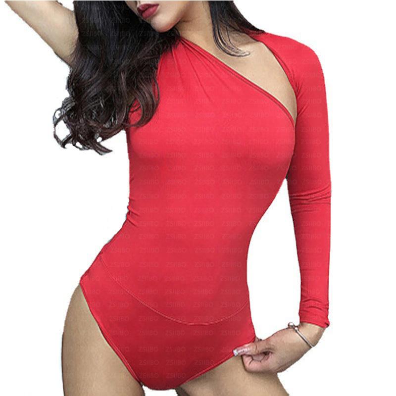 Ropa de mujer de estilo europeo y americano 2023, ropa de moda de nicho con personalidad, mono de manga de un solo hombro de color sólido, medias de fondo
