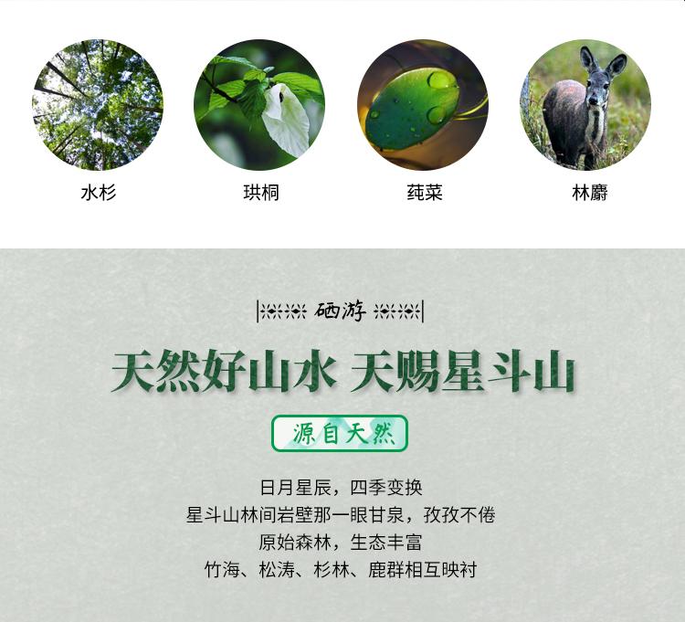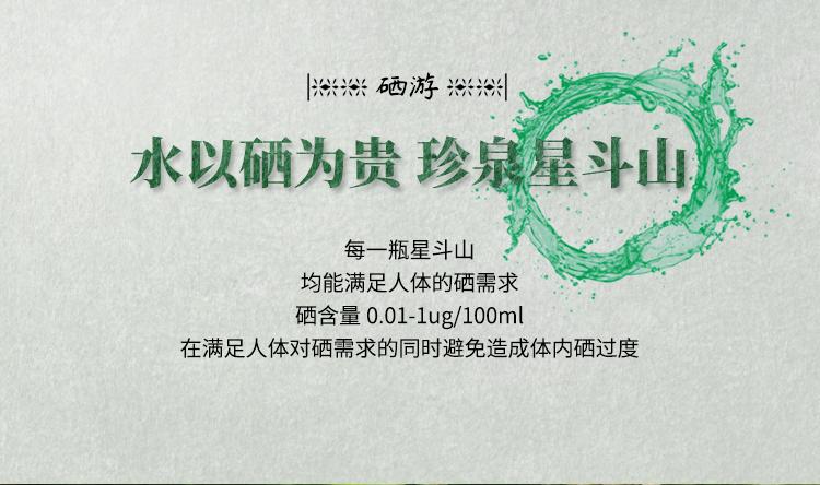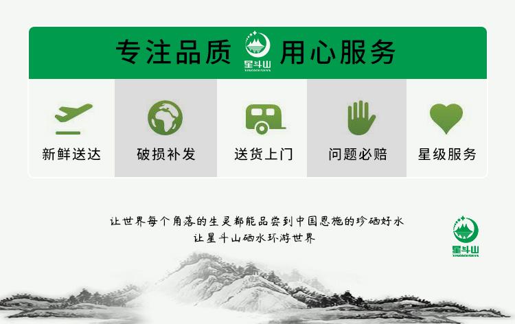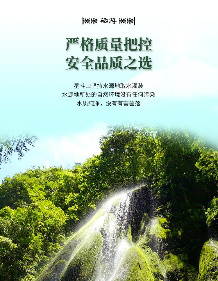 La Fuente de Agua de Manantial de la Montaña Xingdou está ubicada en la Aldea Anletun, Pueblo Shengjiaba, en la Reserva Natural de la Montaña Xingdou. Hay una fuente natural de agua de manantial de montaña llamada Qigushui. El flujo de agua es estable durante todo el año y la calidad del agua es clara y transparente. Según la prueba de la agencia de pruebas, la fuente de agua contiene selenio (0.000764mg/L), estroncio (0.265mg/L) y otros minerales necesarios para el cuerpo humano. Es baja en sodio y débilmente alcalina (valor de PH 25℃7.0-8.5). La calidad del agua es clara, el sabor es positivo y es dulce y deliciosa.