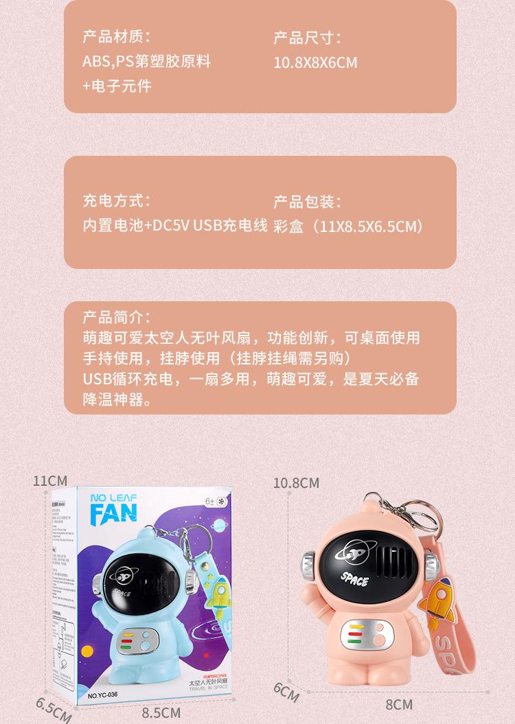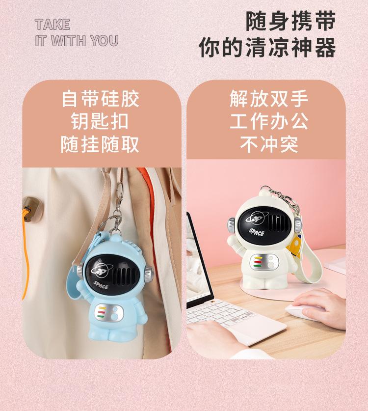 Ventilador pequeño Spaceman turbo con carga USB, mini llavero astronauta, ventilador eléctrico de mano de 2 velocidades