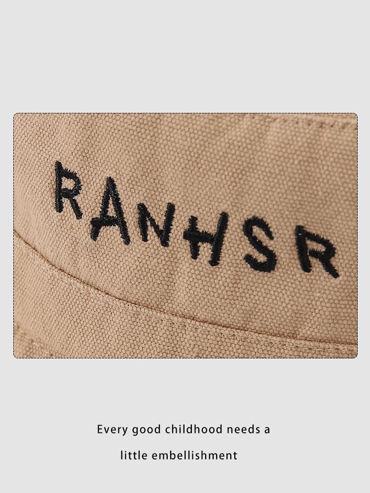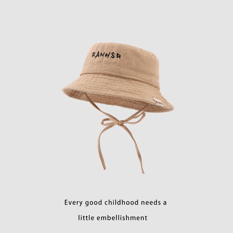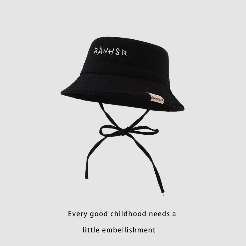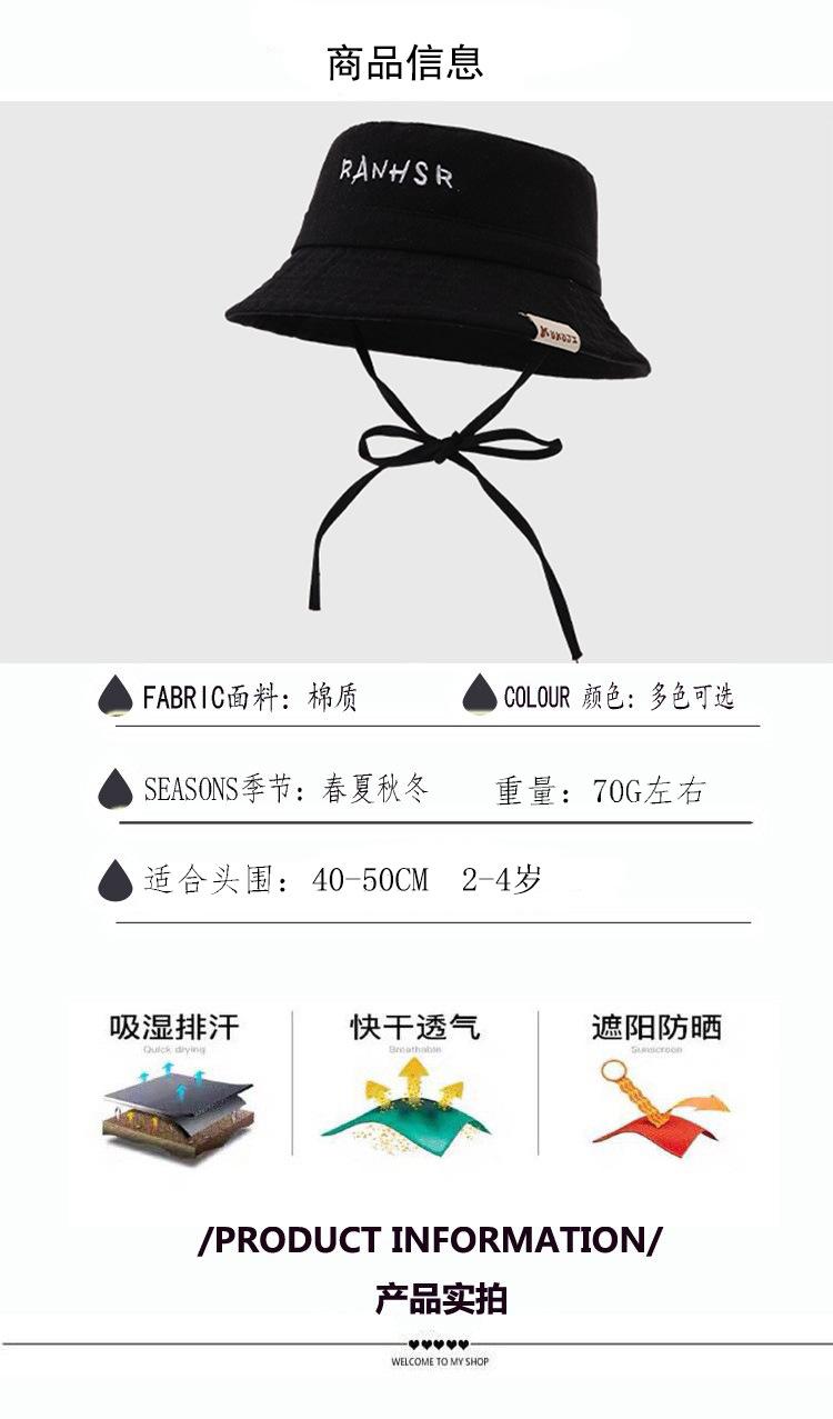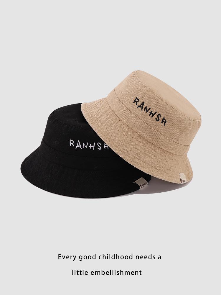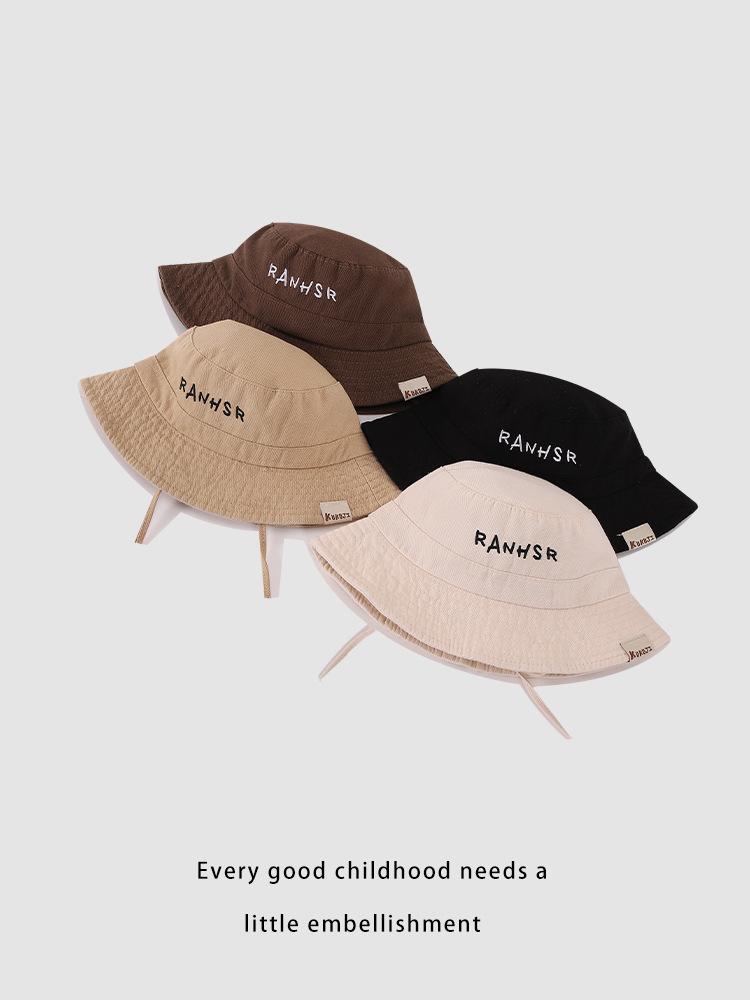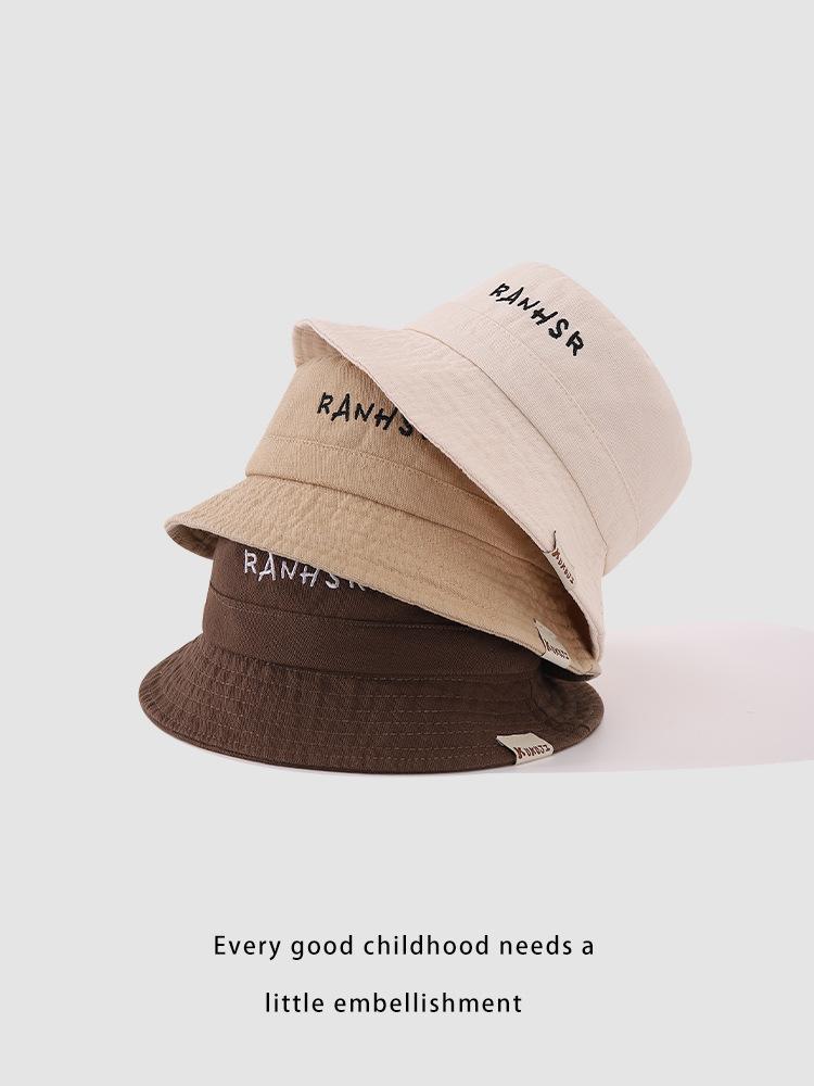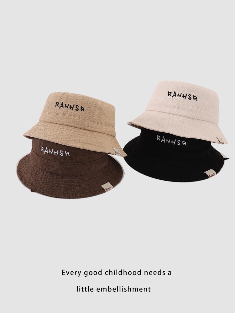 Sombrero europeo y americano para niños sombrero de pescador color sólido letra combinable sombrero de bebé 2-4 años niños y niñas sombrero de cubo sombrero para el sol