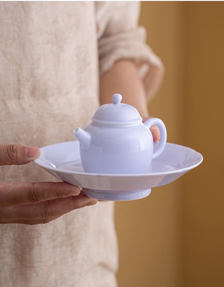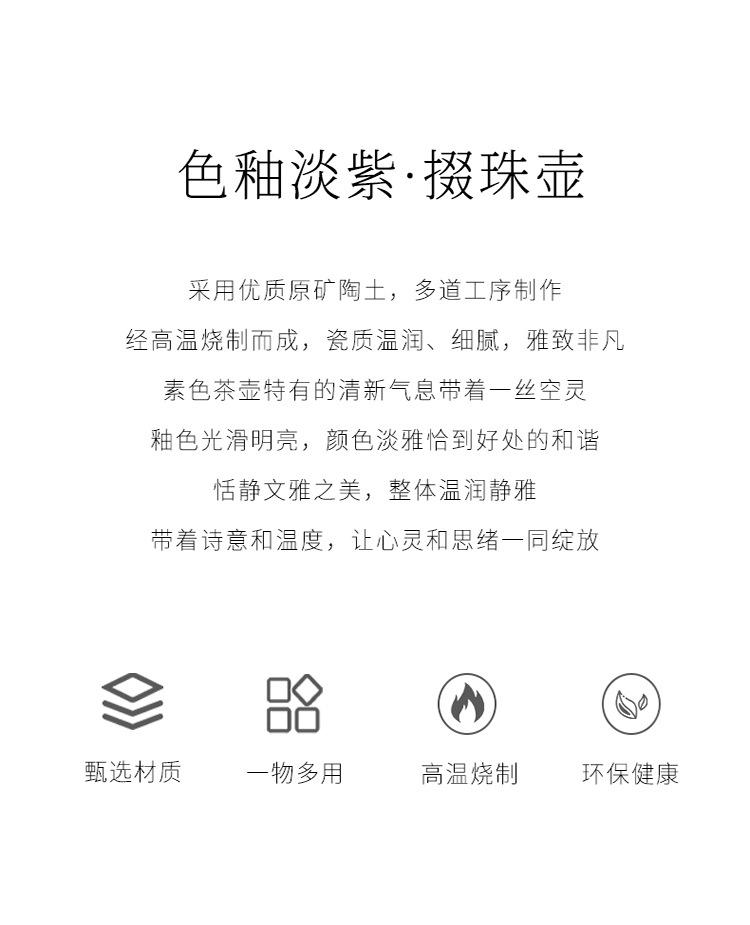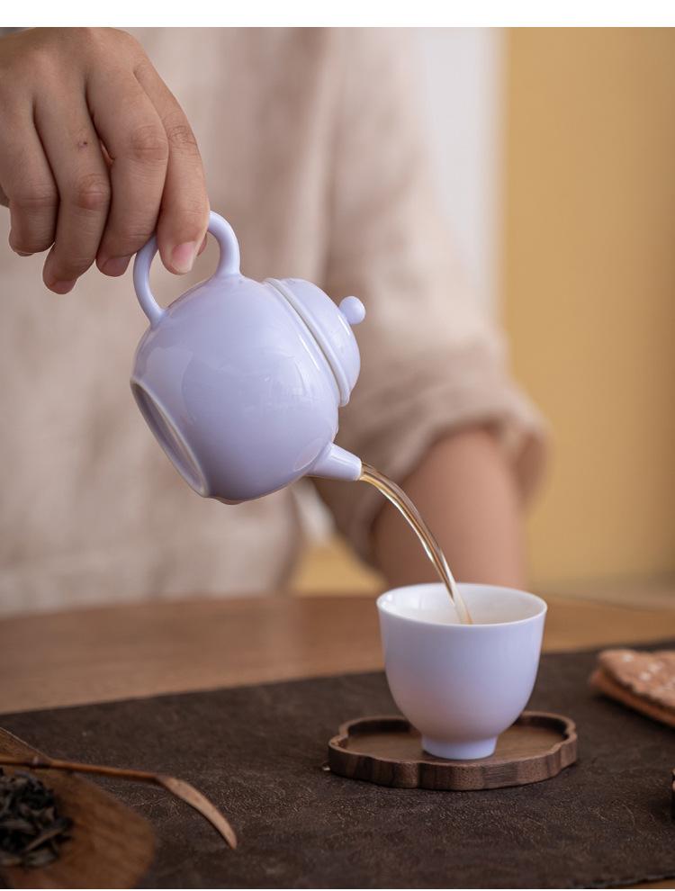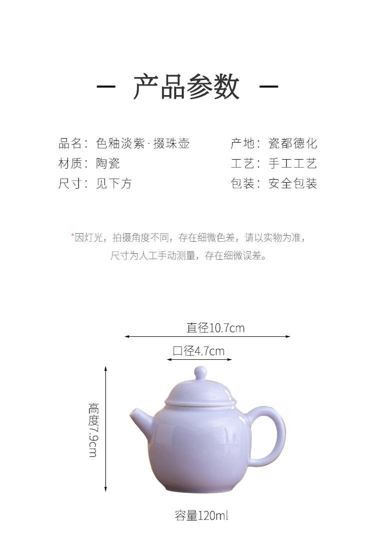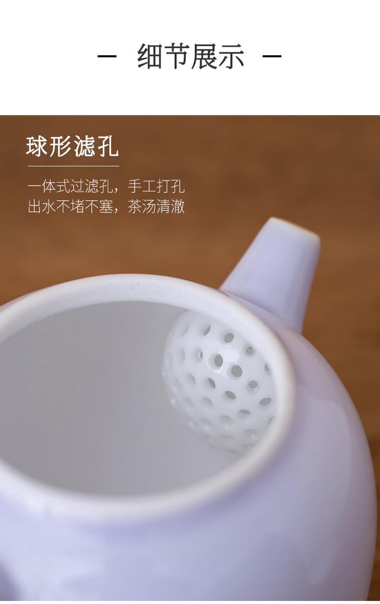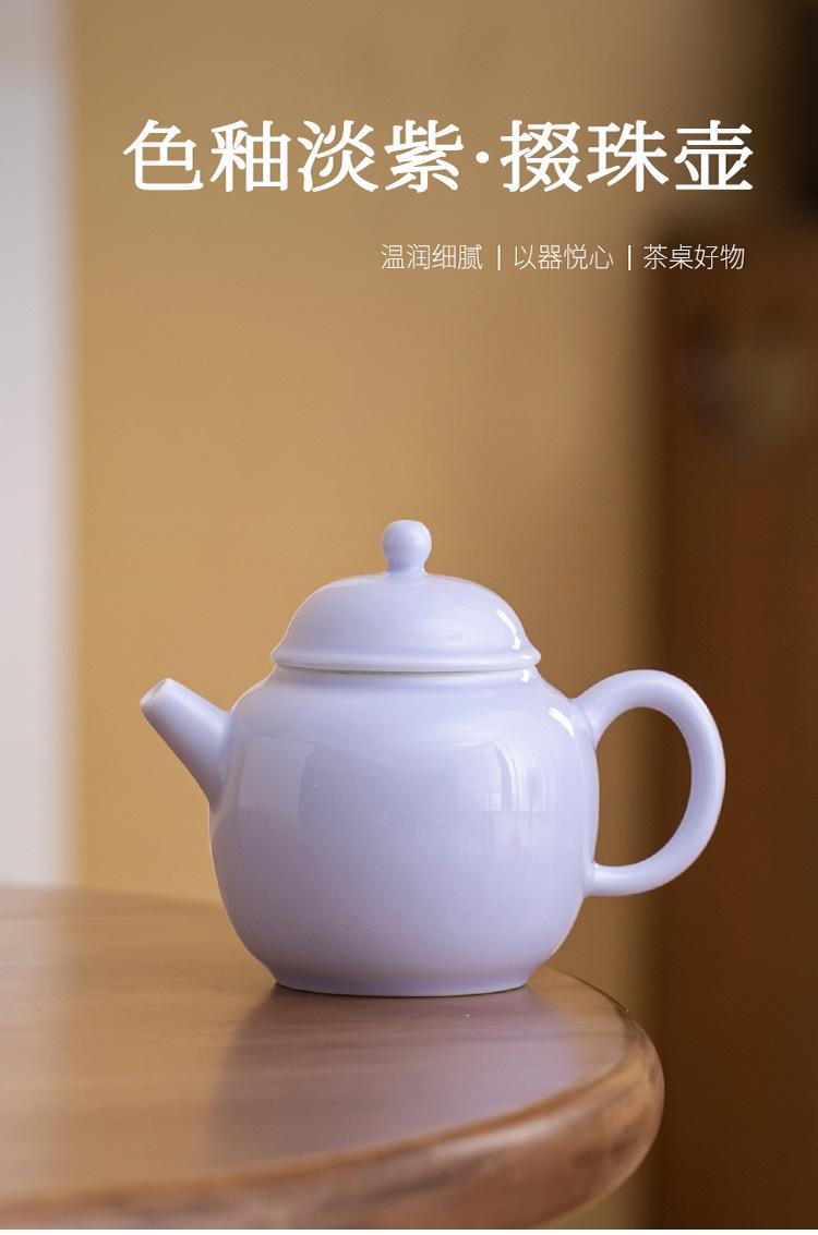 Tetera pequeña morado claro para el hogar, tetera de cerámica antiquemaduras con filtro de cinturón, juego de tetera con soporte, juego de té Kung Fu, tetera para una persona