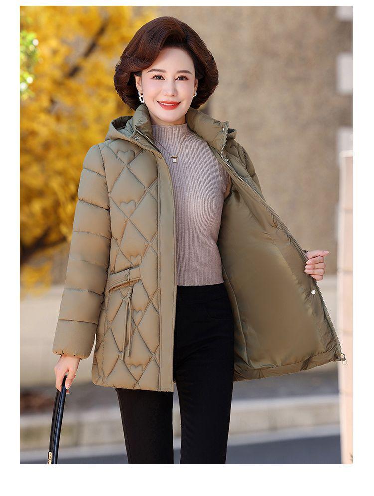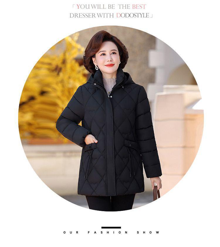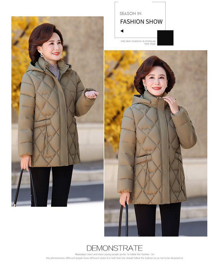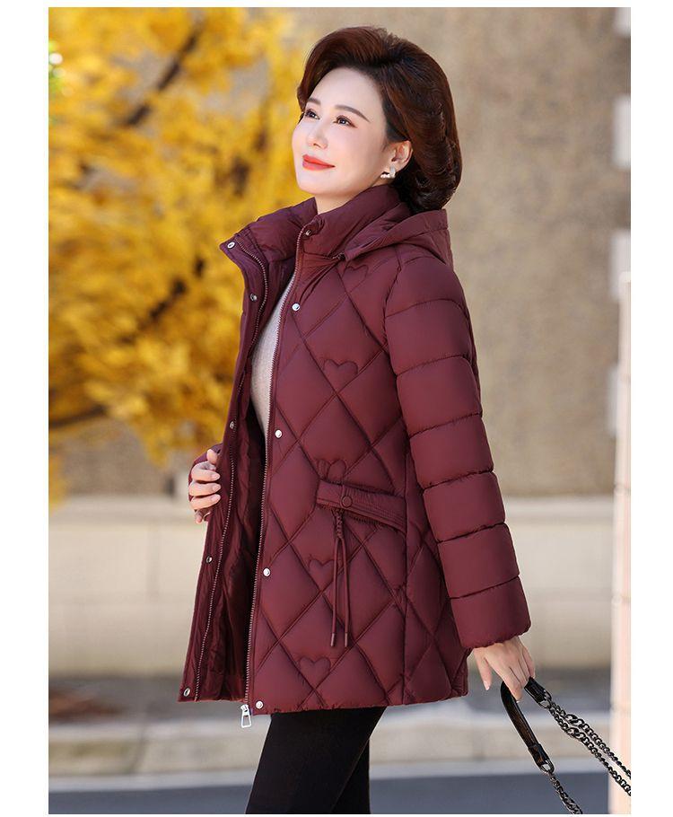 Abrigo acolchado de algodón para madres, invierno 2024, ropa de invierno, nuevo abrigo acolchado de algodón de estilo occidental, abrigo para personas de mediana edad y mayores, abrigo acolchado de algodón grueso y cálido de longitud media