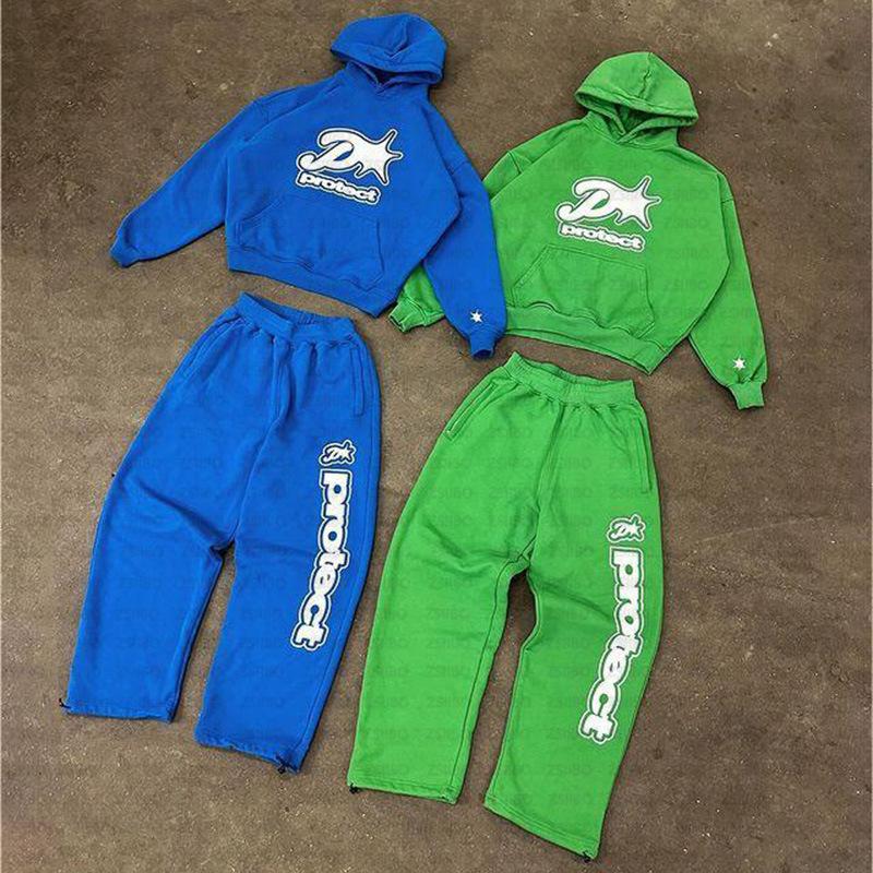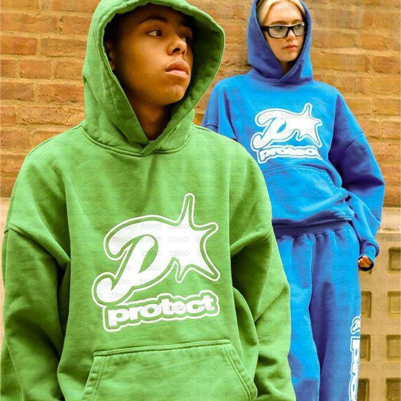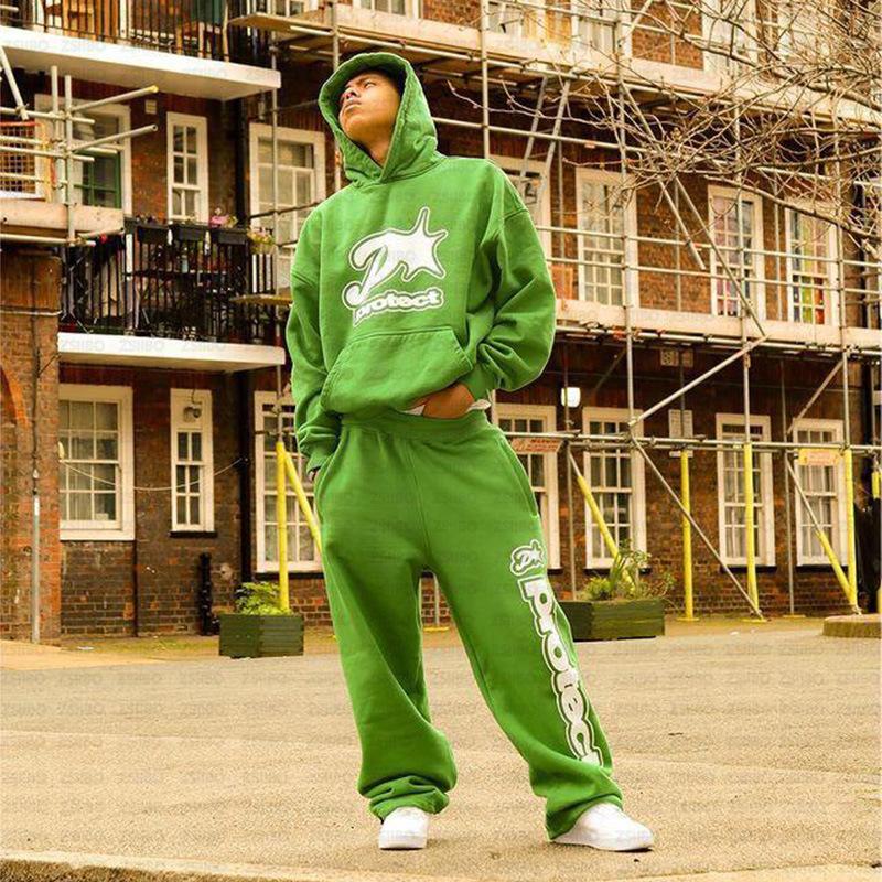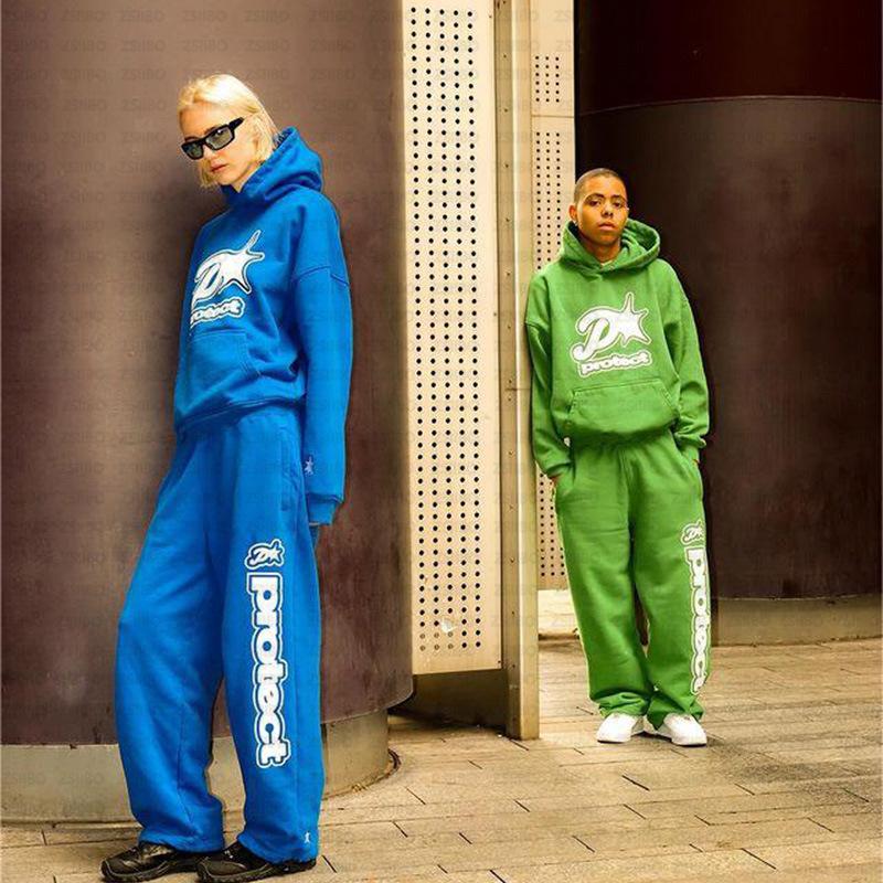 Suéter con capucha y pantalones de hip hop de moda callejera estadounidense con letras personalizadas para hombre y mujer