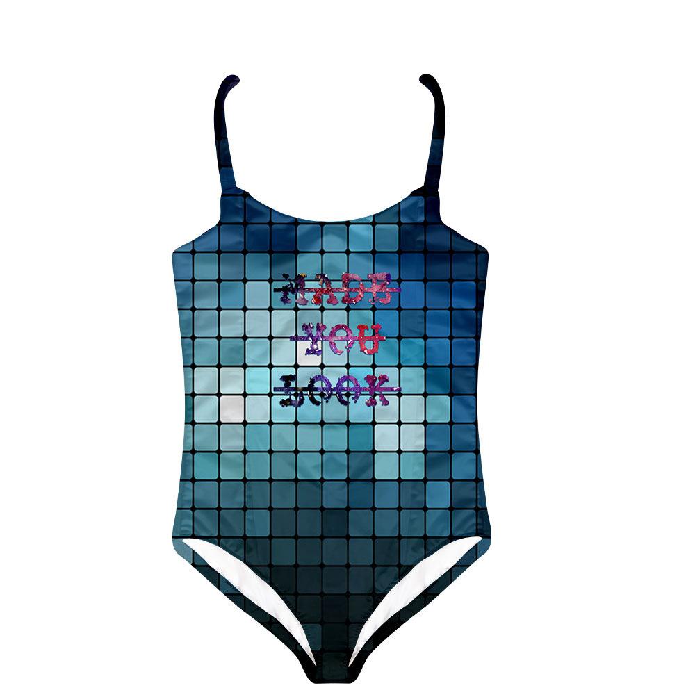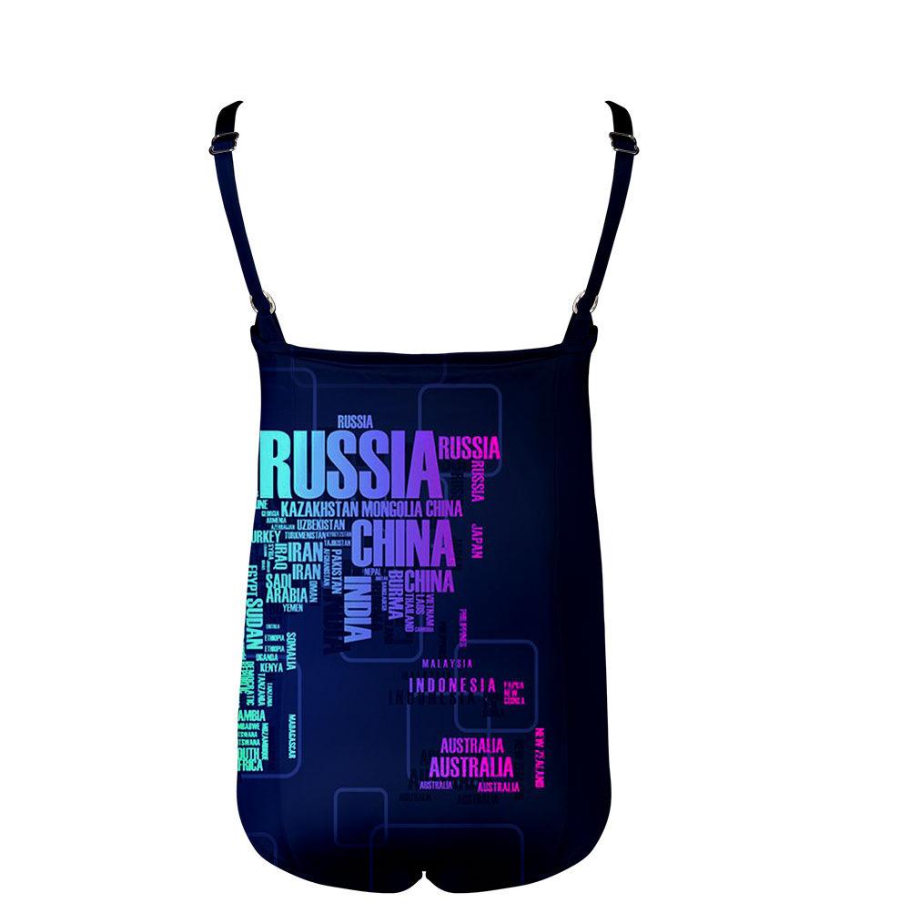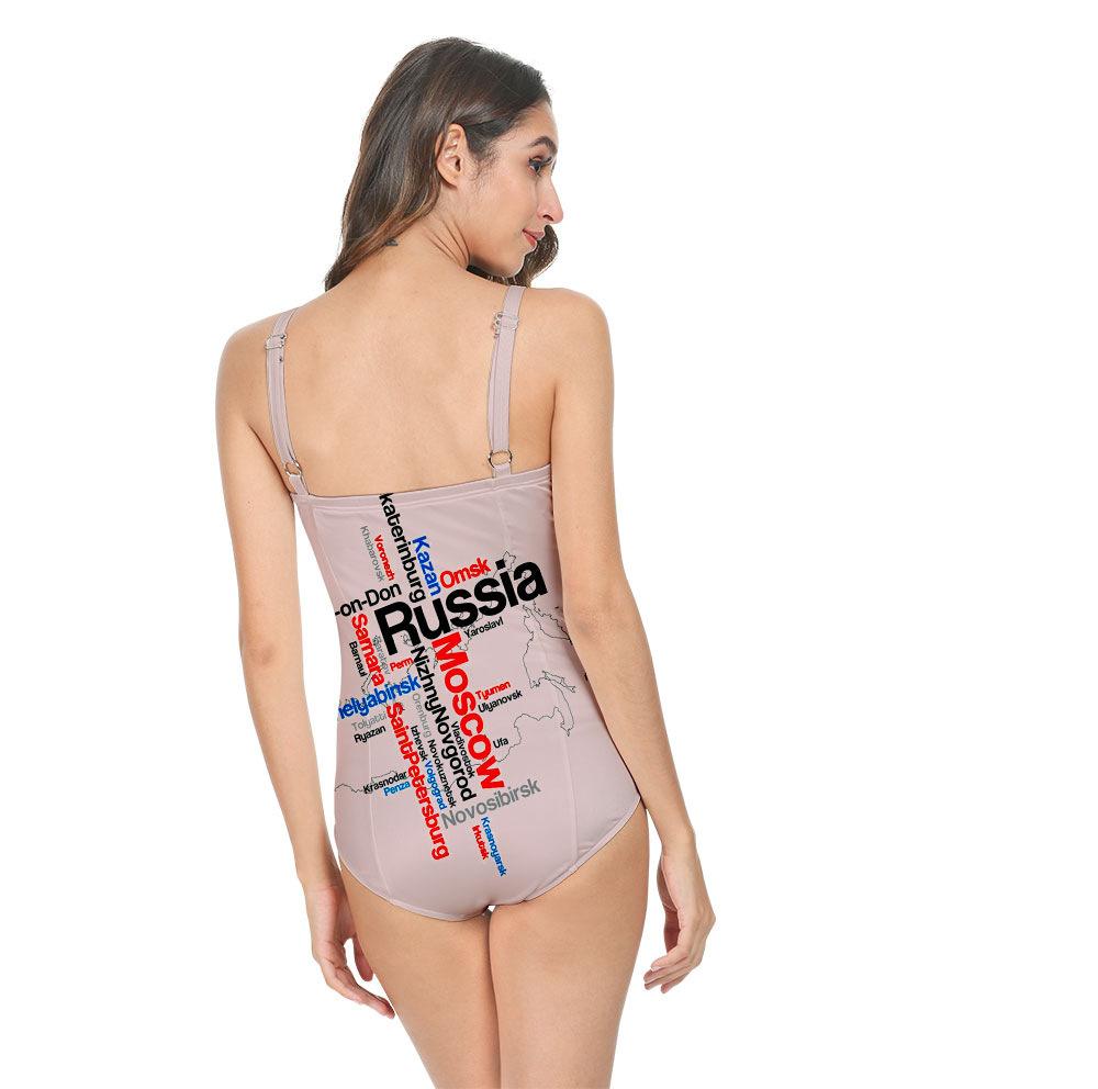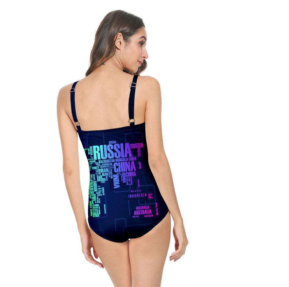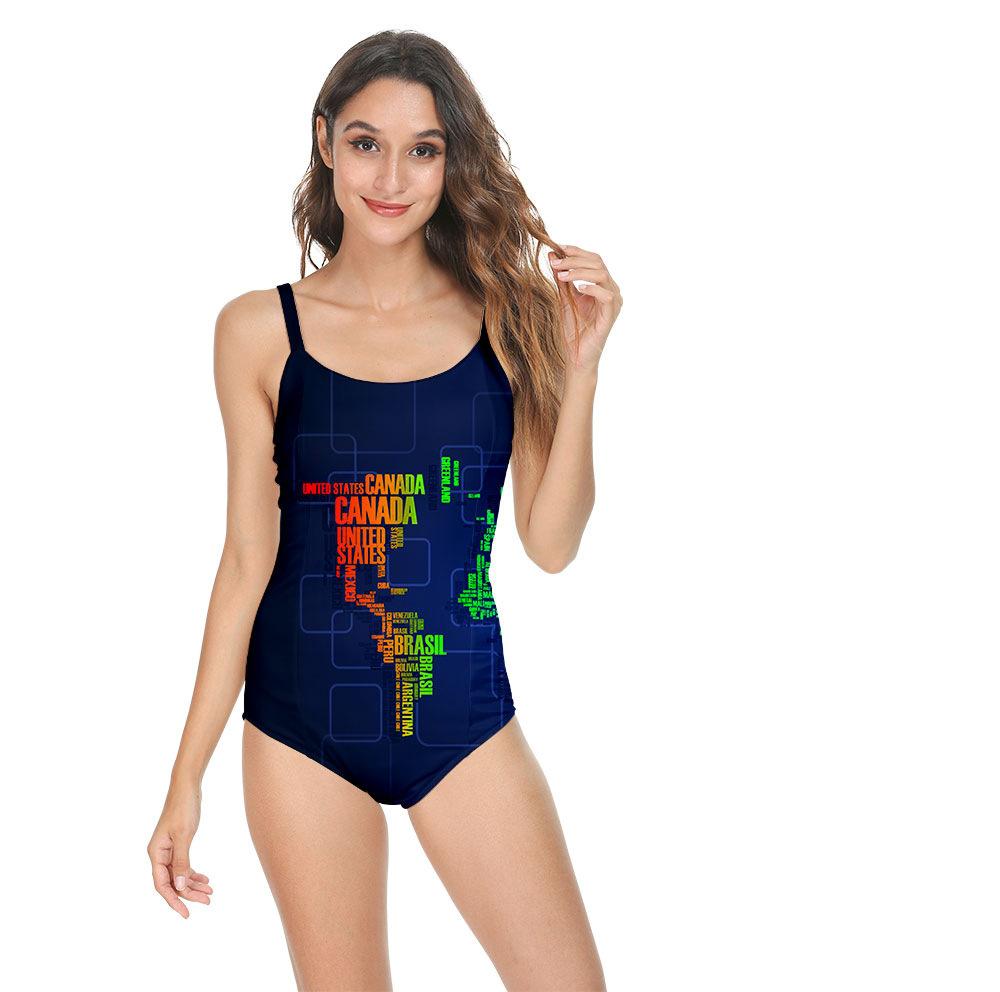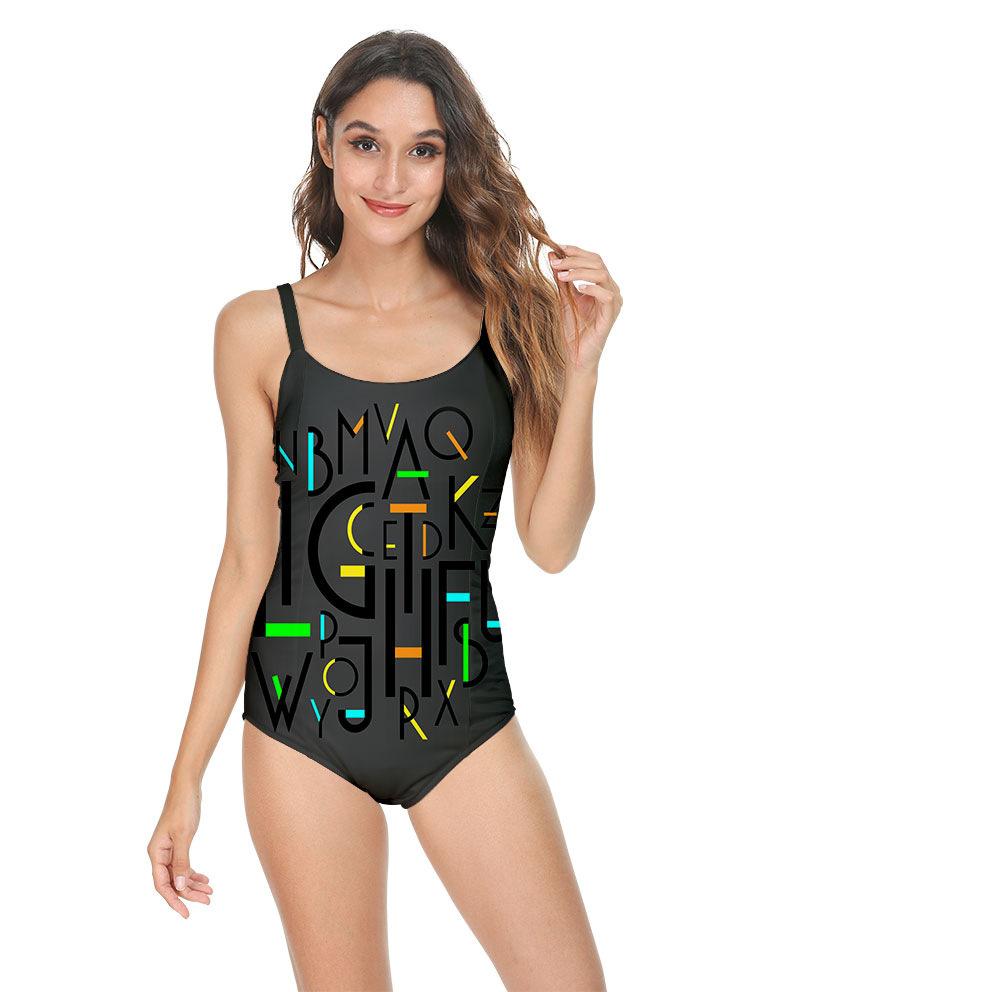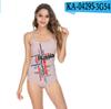 Compra Traje de baño de una pieza sin espalda con tirantes y estampado de letras en inglés de verano transfronterizo de Amazon para mujer al por mayor en Joom.pro