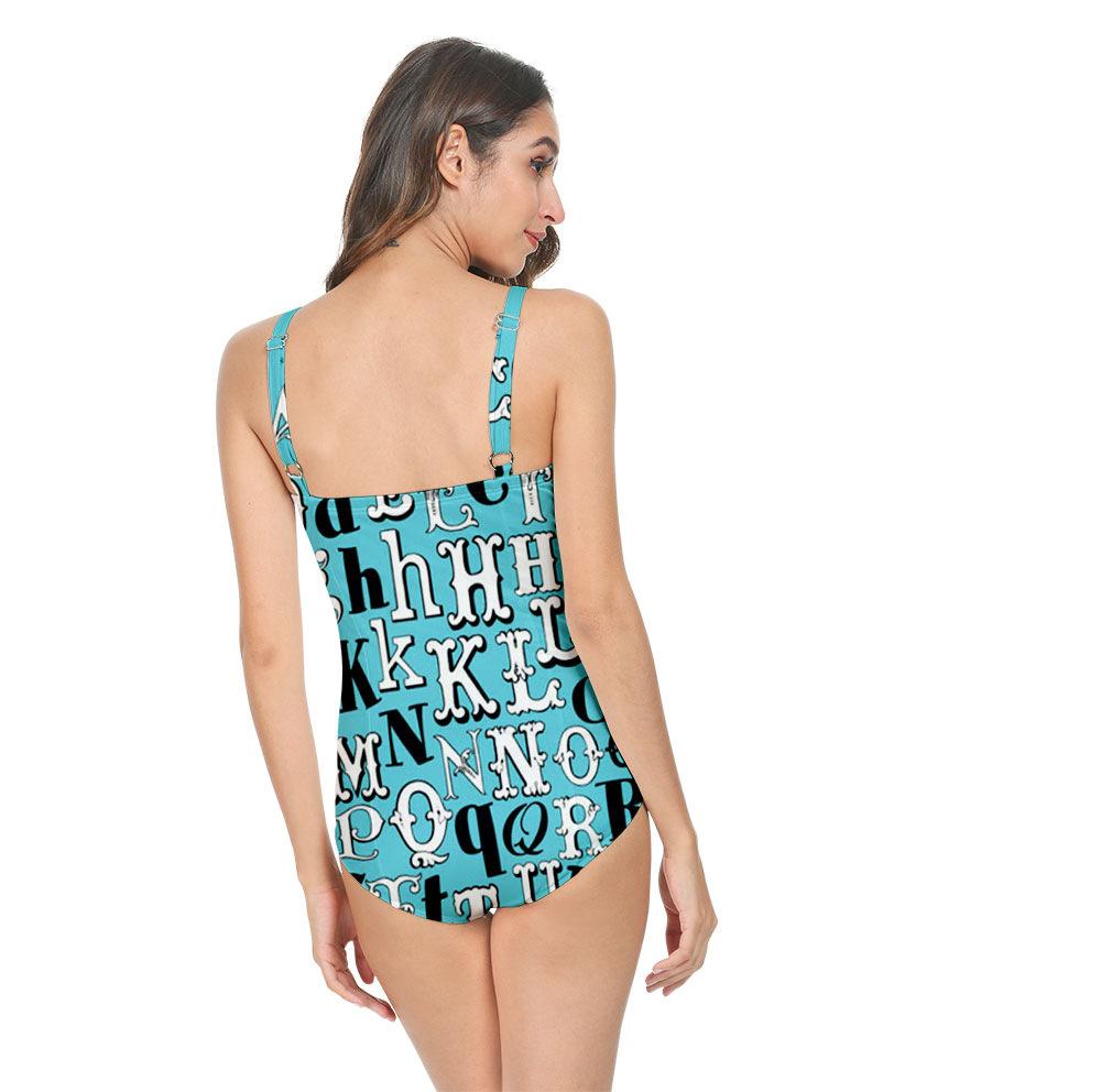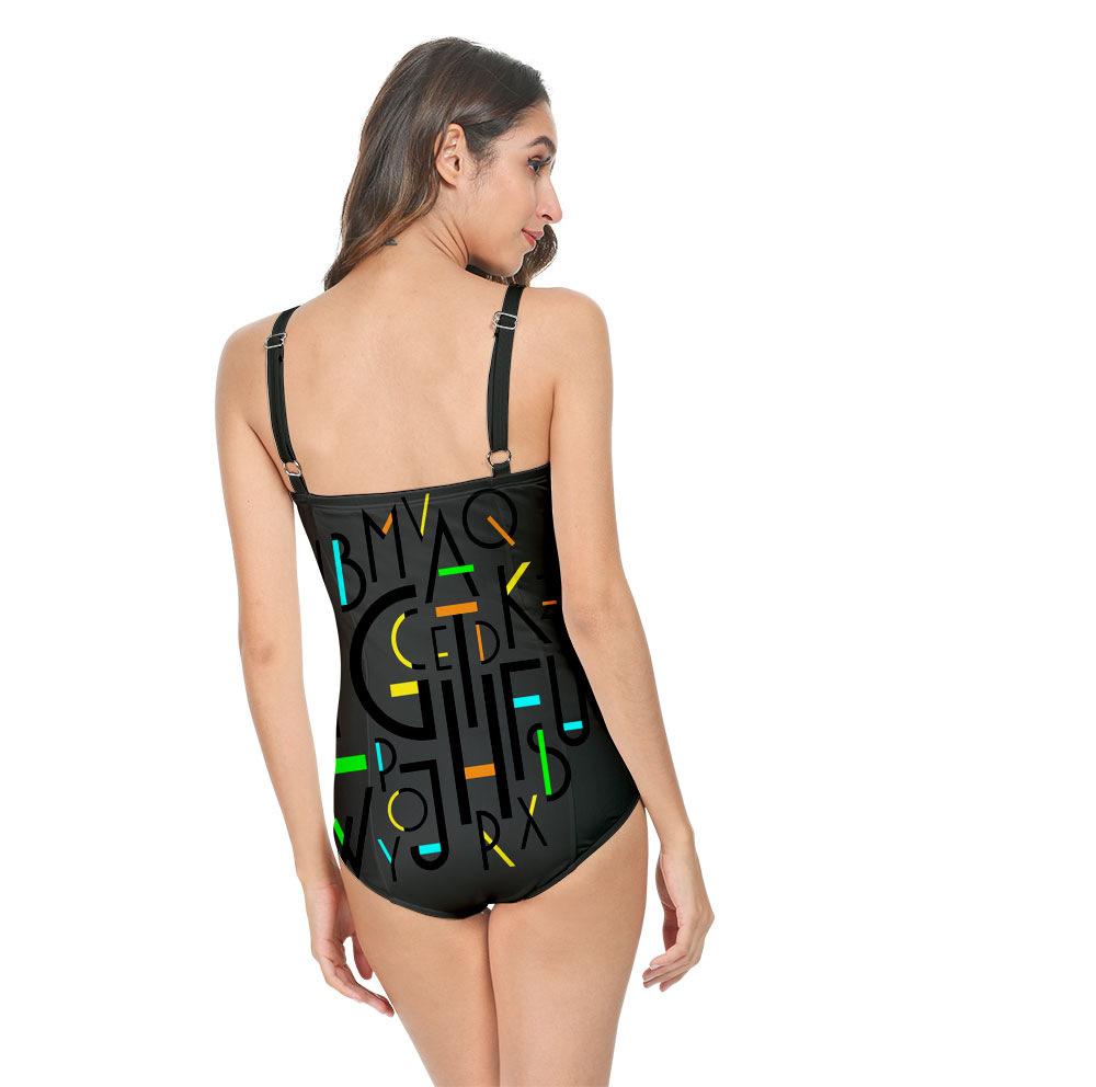 Traje de baño de una pieza sin espalda con tirantes y estampado de letras en inglés de verano transfronterizo de Amazon para mujer