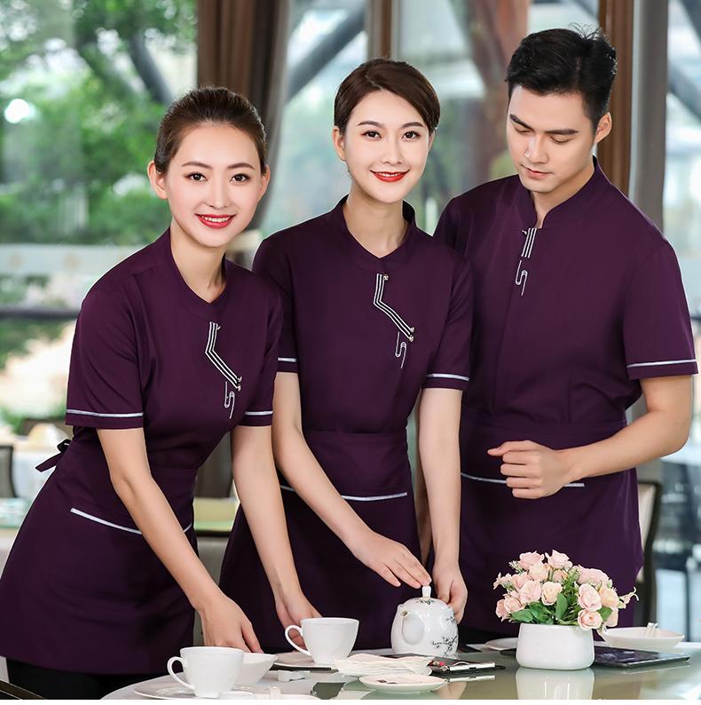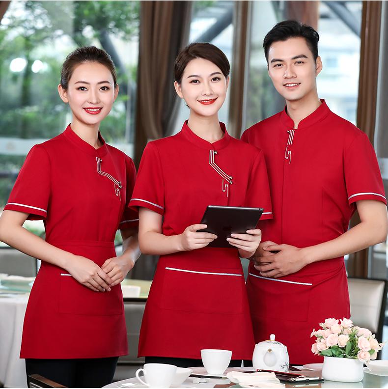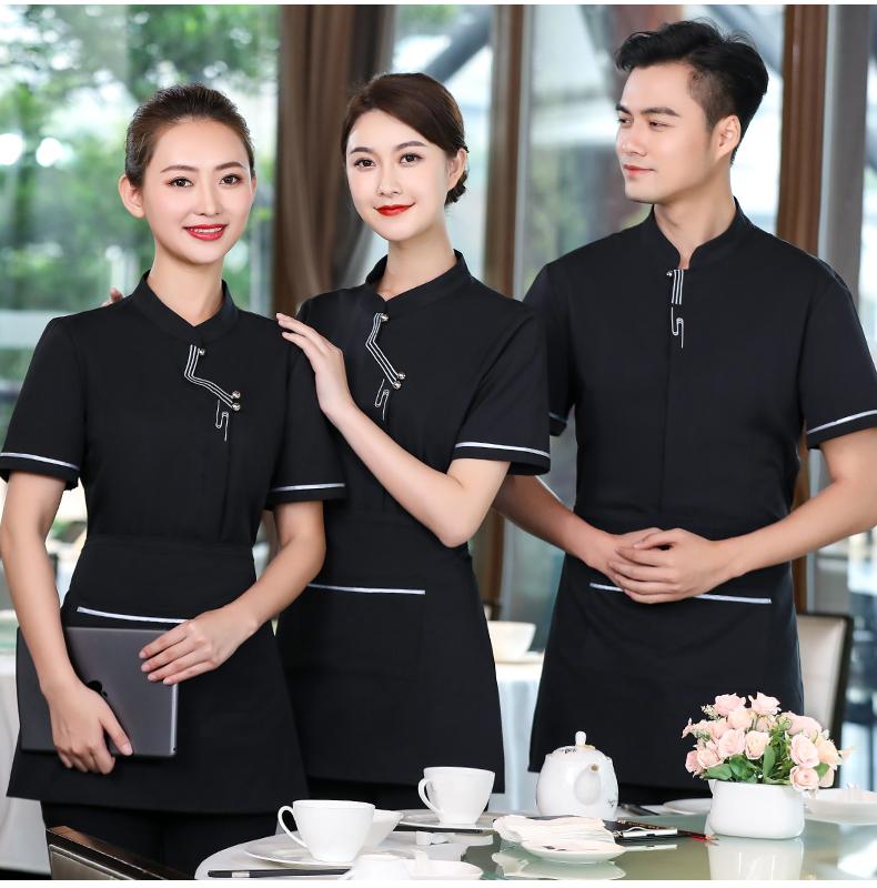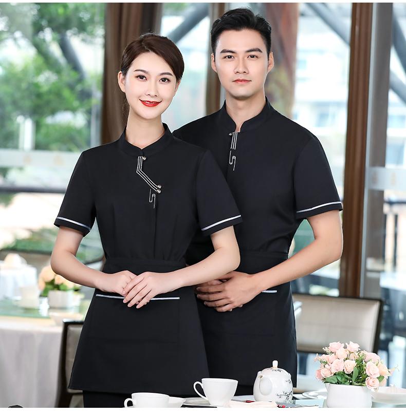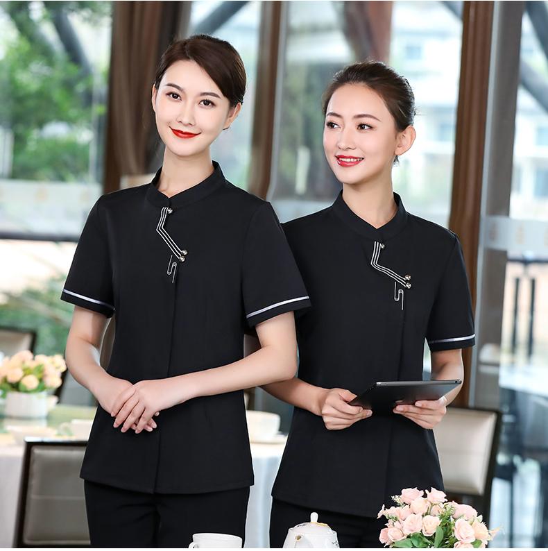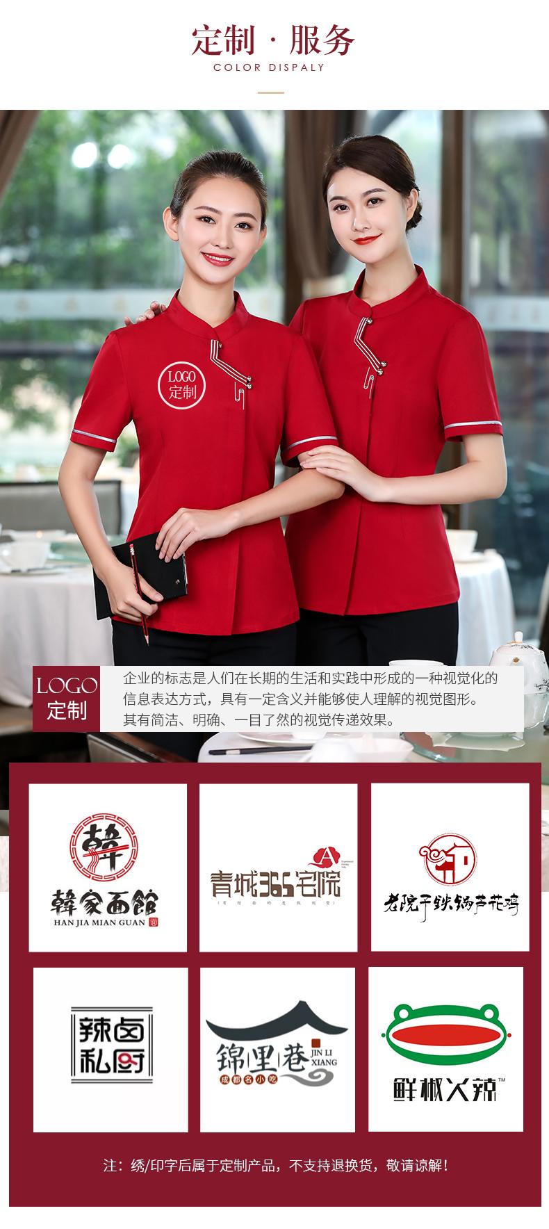 Ropa de trabajo de verano para camarero de hotel, de manga corta, para restaurante, tetera, casa de té, catering, traje chino para mujer con logotipo impreso