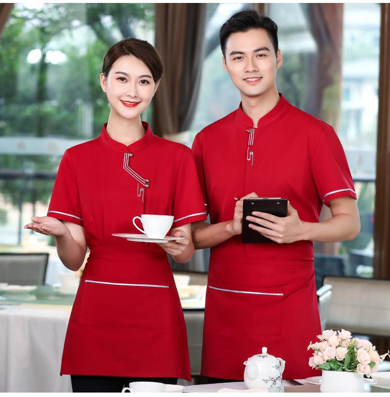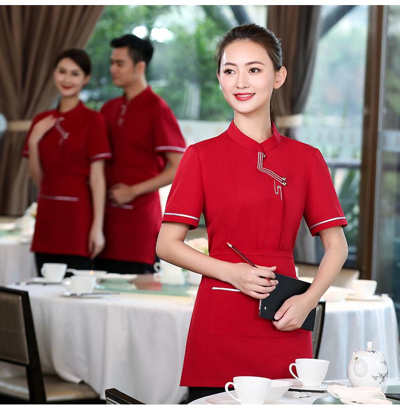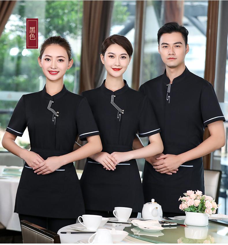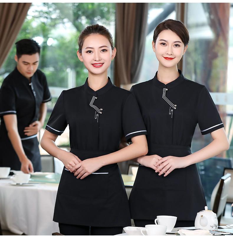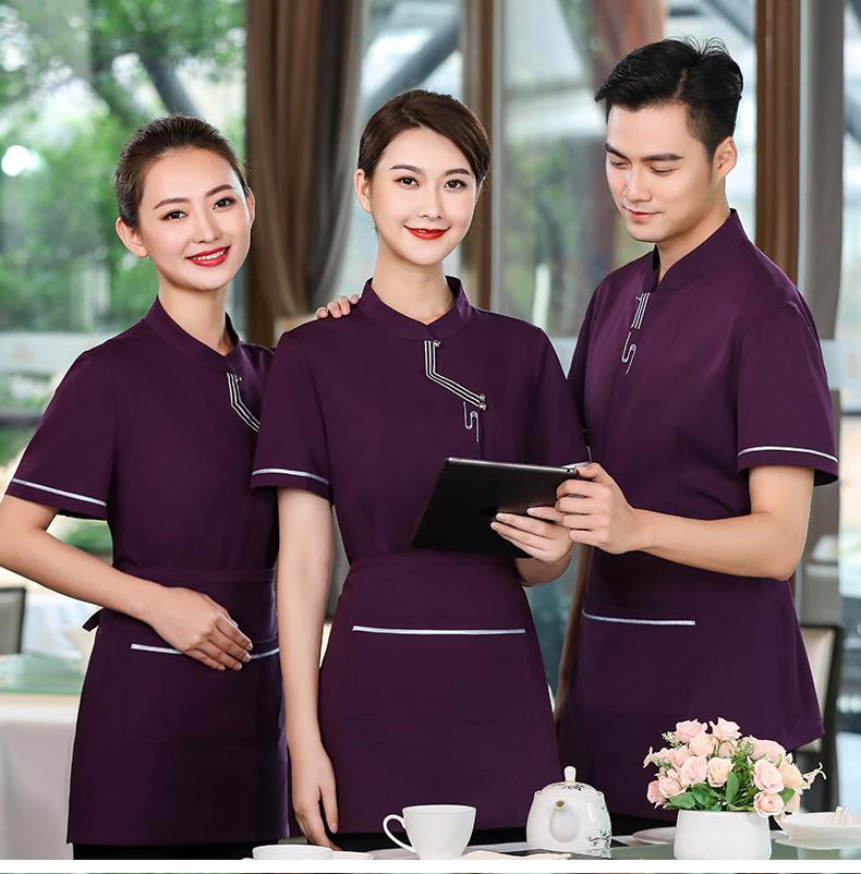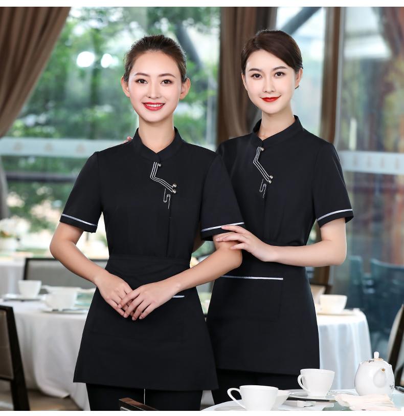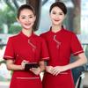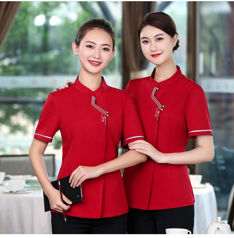 Ropa de trabajo de verano para camarero de hotel, de manga corta, para restaurante, tetera, casa de té, catering, traje chino para mujer con logotipo impreso