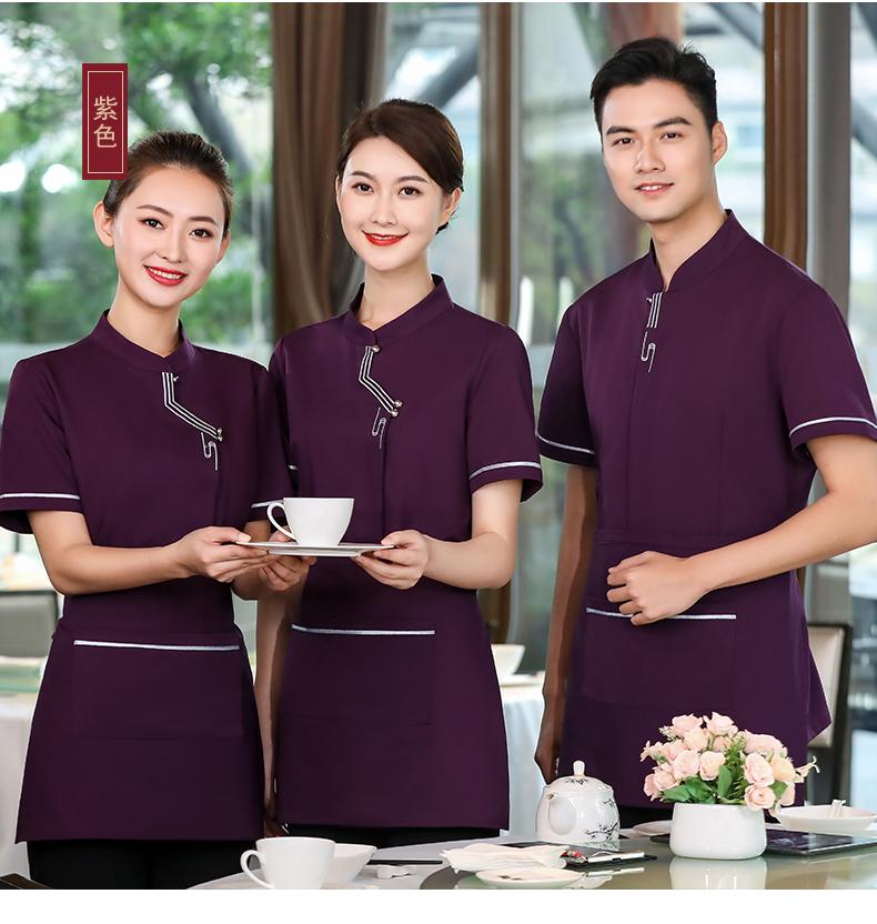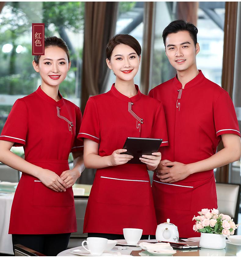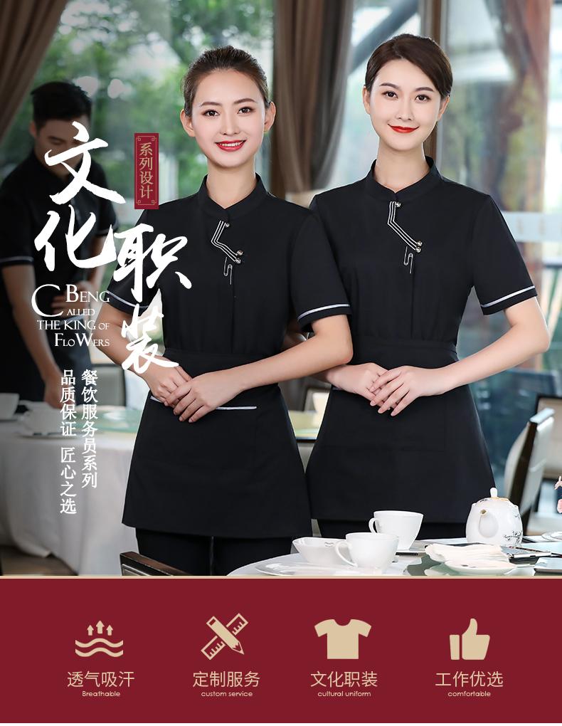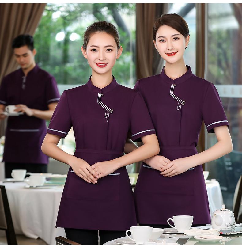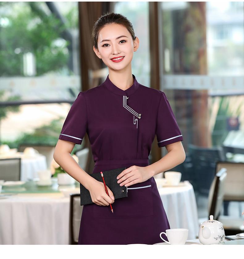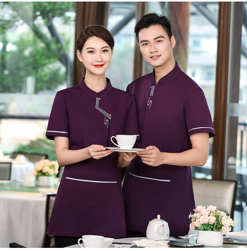 Ropa de trabajo de verano para camarero de hotel, de manga corta, para restaurante, tetera, casa de té, catering, traje chino para mujer con logotipo impreso