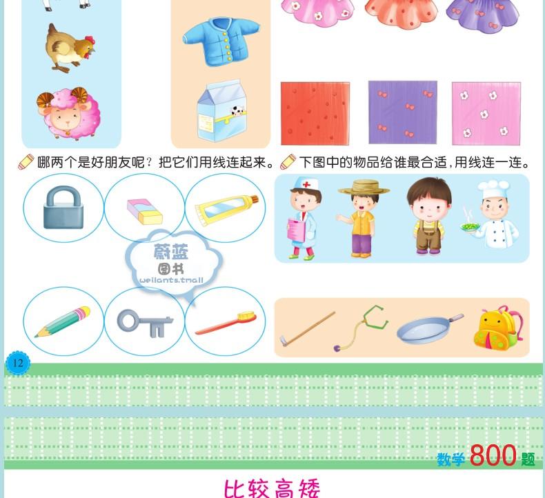 Matemáticas Preescolar 800 Preguntas Entrenamiento del Pensamiento Conexión Escuela Infantil y Primaria Preparación Escolar Libro de Texto Escuela Infantil y Primaria Práctica de Jardín de Niños Todos los Días