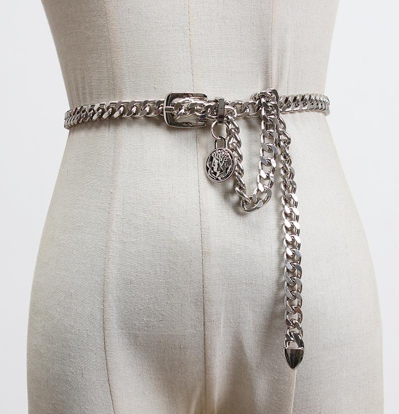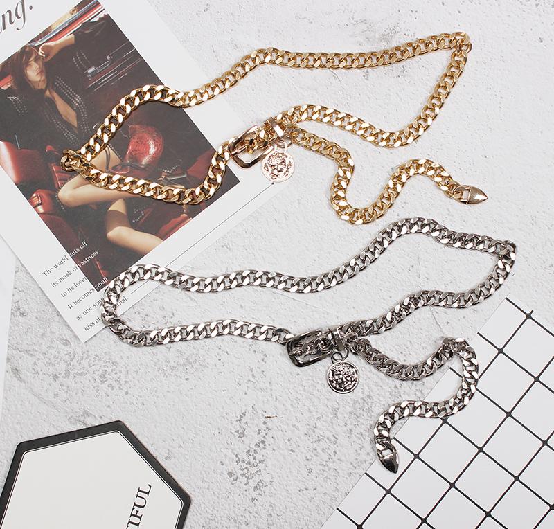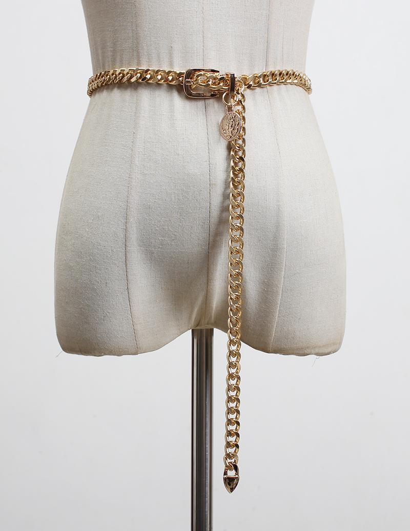 Cadena de cintura para mujer, decoración fina, vestido, falda a juego, moda, todo en uno, cinturón de cadena de metal dorado y plateado, moda