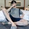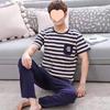 Pijama 100% algodón para hombre, pantalones de manga corta de algodón para primavera y otoño, traje fino de verano para hombre para estar en casa