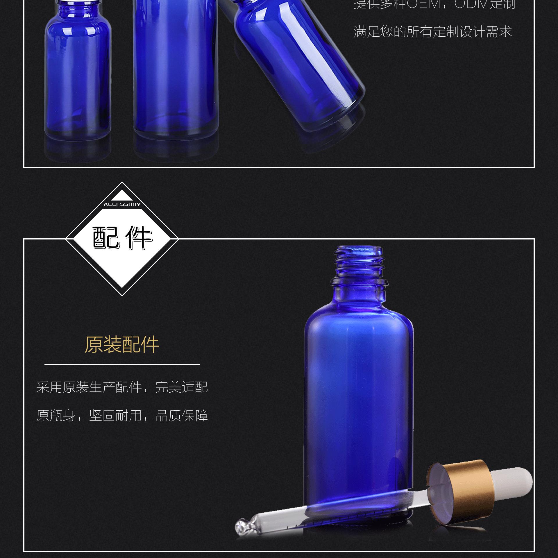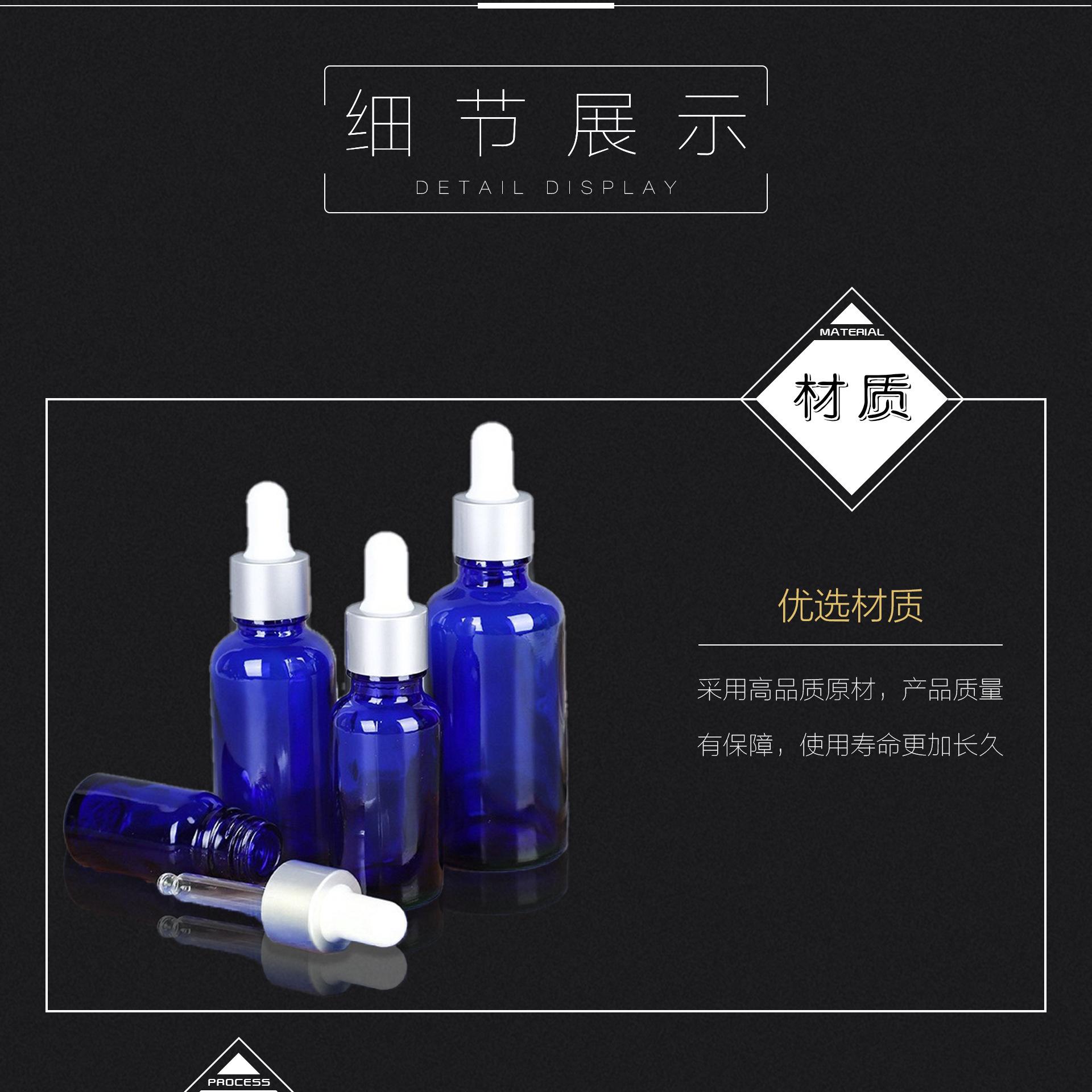 Blue bottle + anodized aluminum black ring + black plastic head + dropper * 15ml * glass