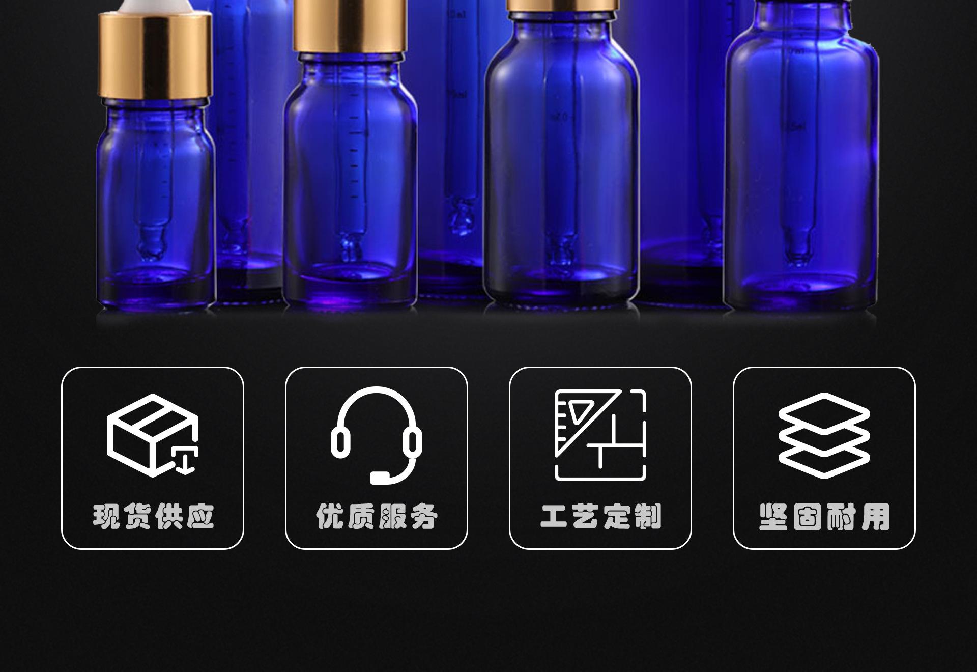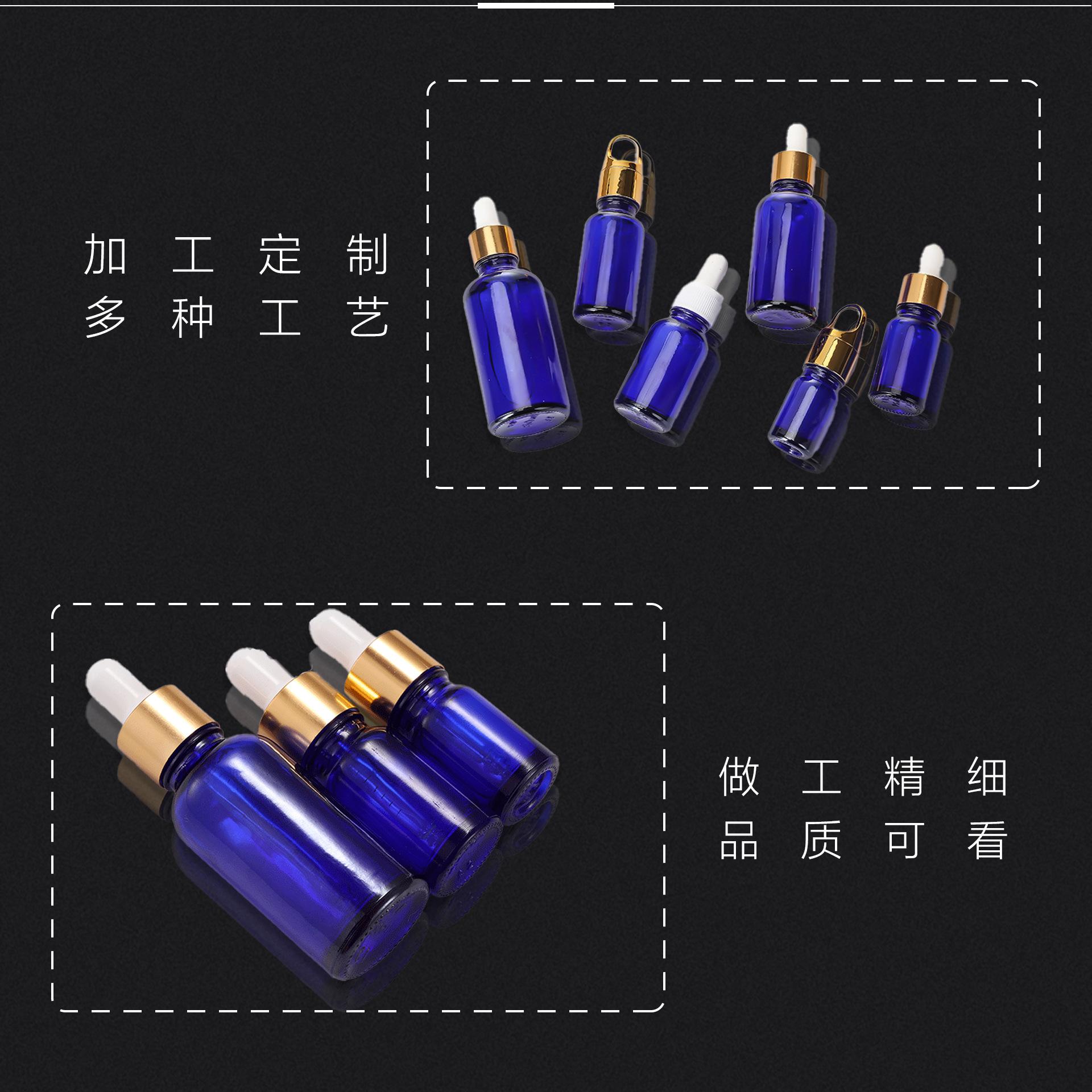 Blue bottle + anodized aluminum black ring + black plastic head + dropper * 5ml * glass