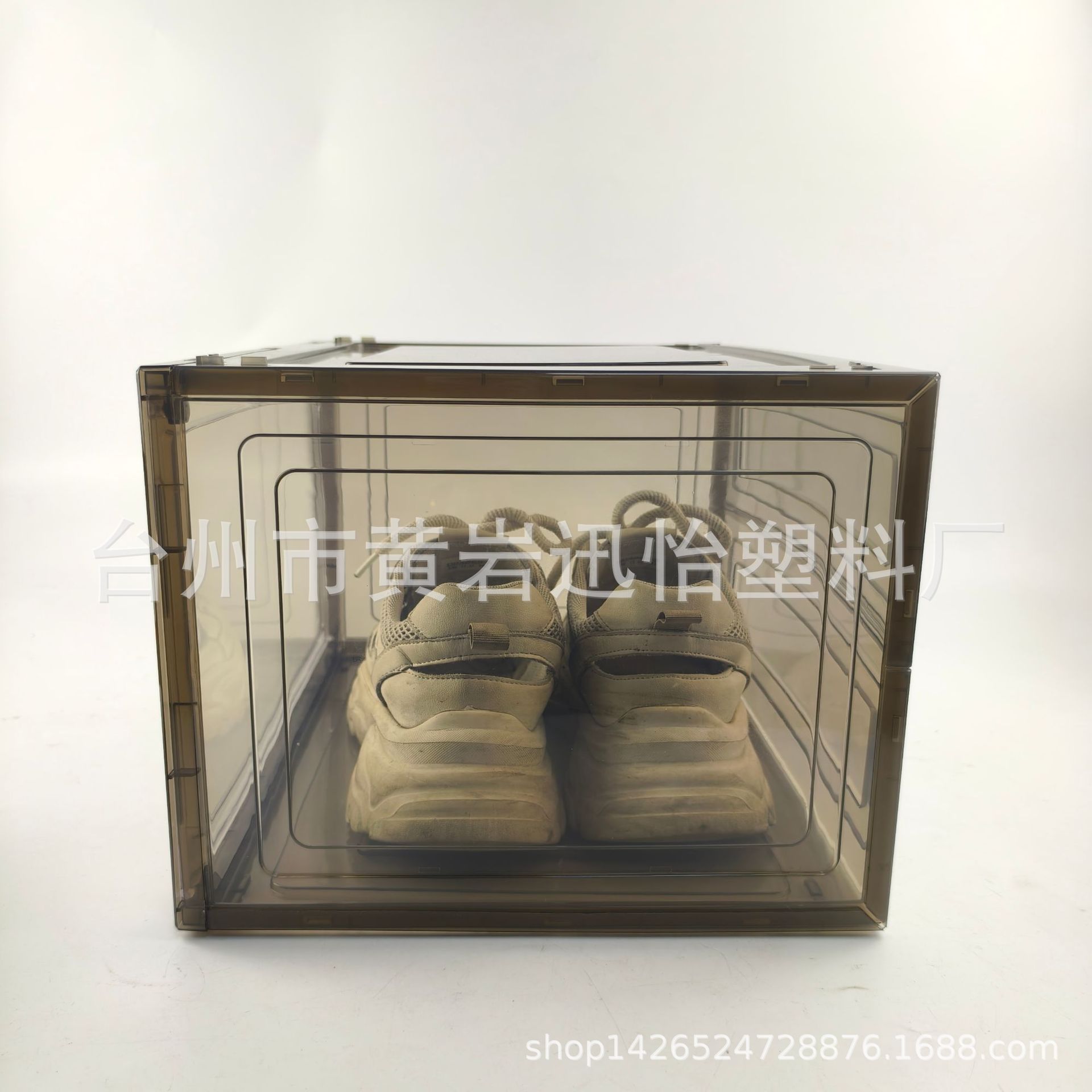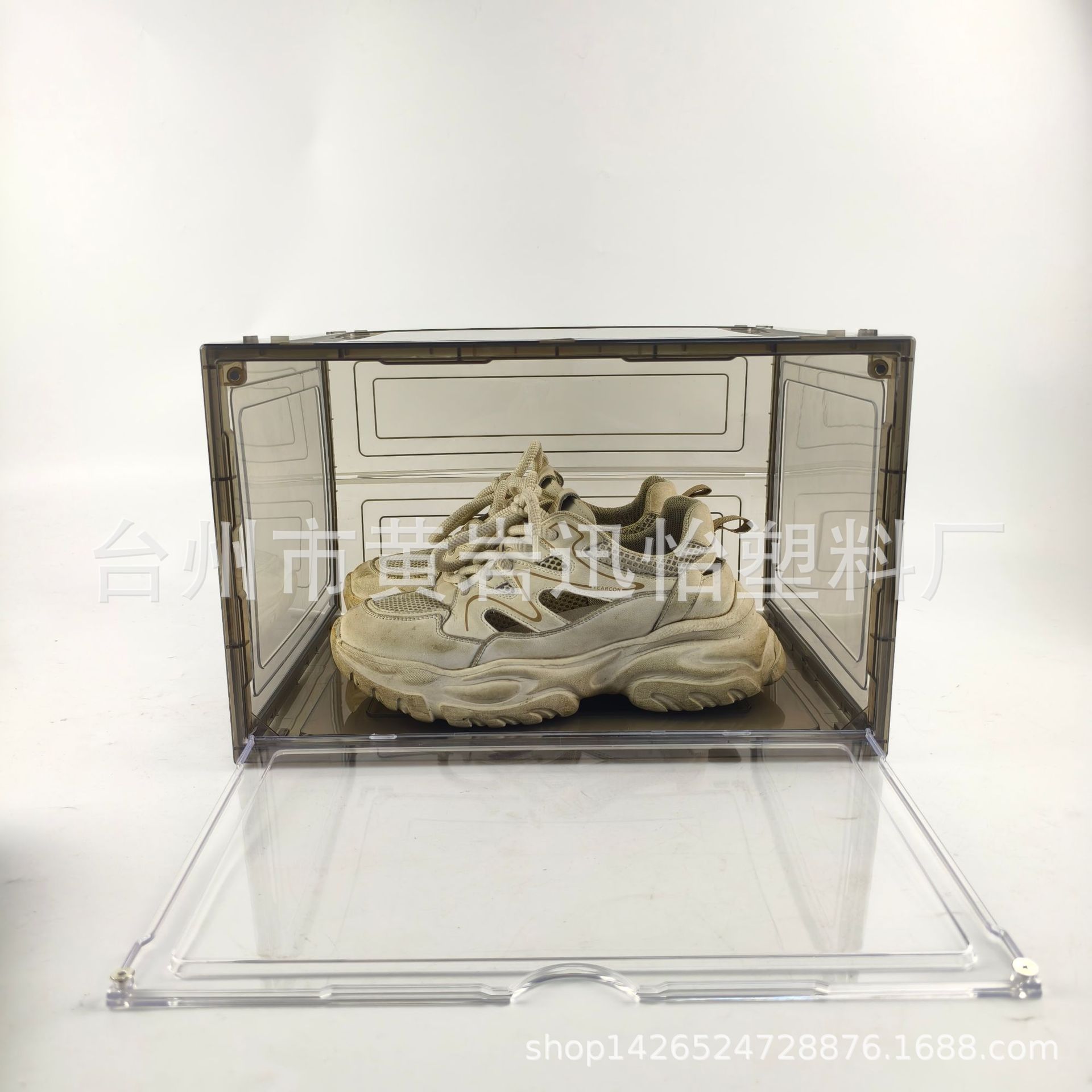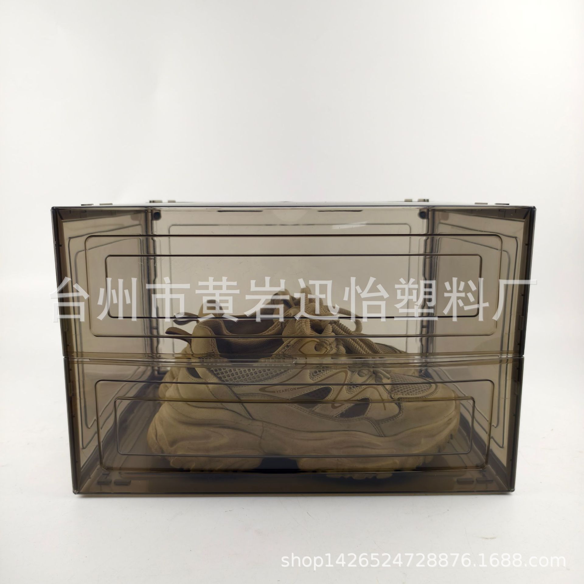 Caja de almacenamiento al por mayor de fábrica, caja de zapatos transparente, material PET, apilada, multicapa, de plástico, plegable, para zapatos