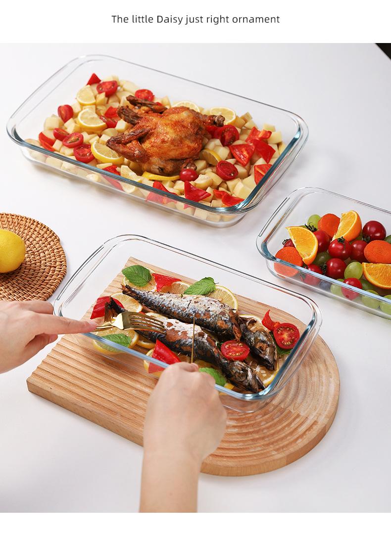 Utensilios para calentar en microondas, plato rectangular, bandeja de vidrio, plato de pescado, bandeja para hornear al vapor para salsa, recipiente pequeño para mariscos