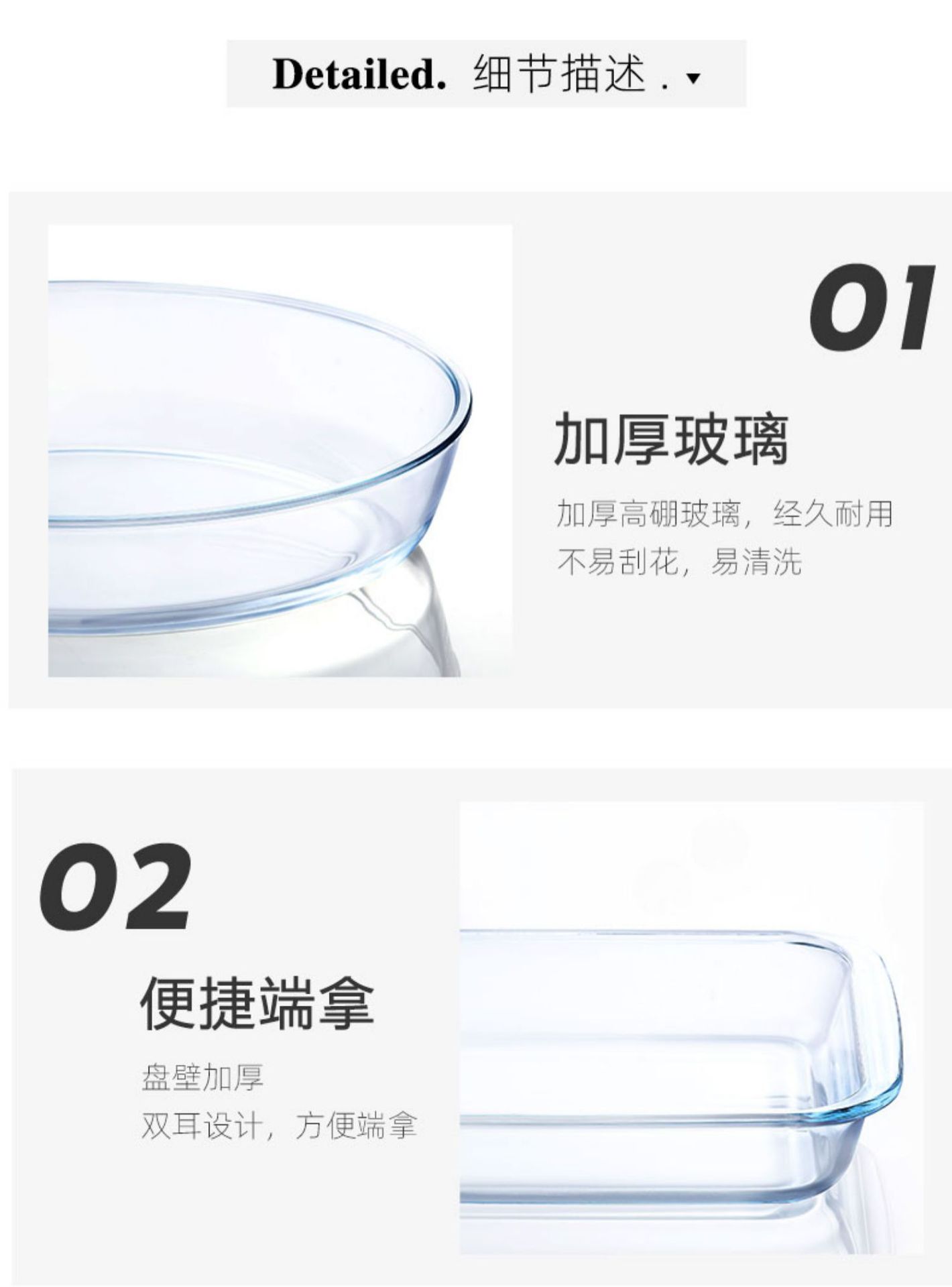 [1 pack] 1 liter round borosilicate double-eared bowl✅ Can be used in ovens and microwaves