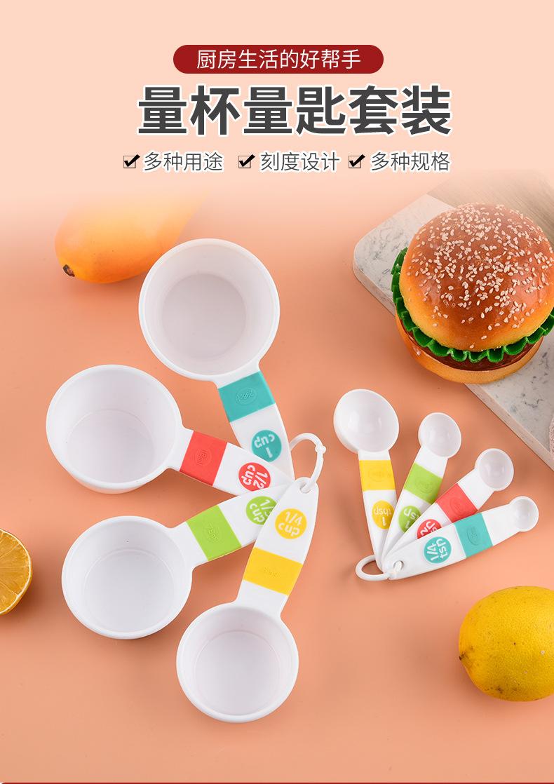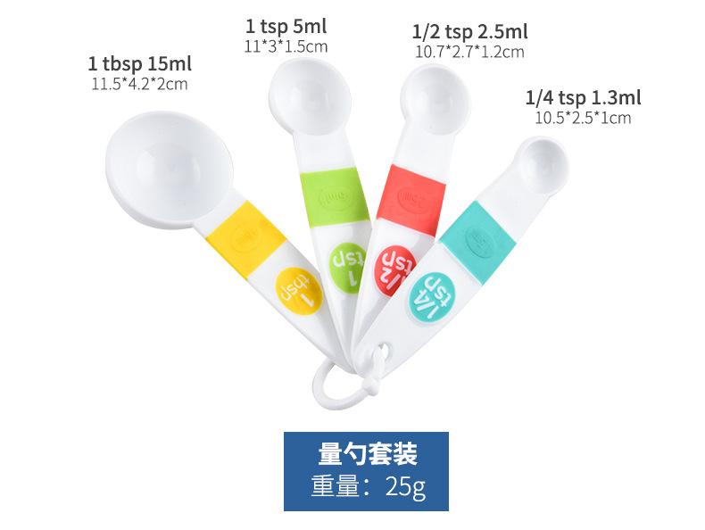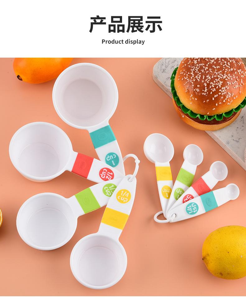 Cuchara medidora de plástico, taza medidora, adecuada para repostería doméstica con escala de color, cuchara para leche en polvo, cuchara para café, cuchara para condimentar, juego de 8 piezas