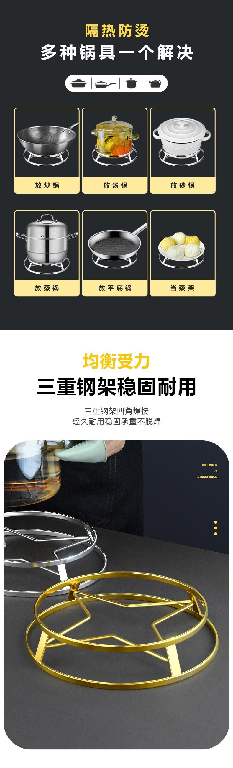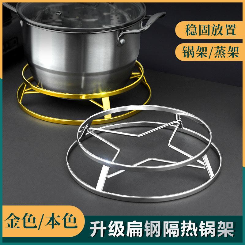 Estante plano de acero inoxidable para ollas para cocina doméstica, estante de almacenamiento de doble capa engrosado aislante del calor antiquemaduras, estante para vaporera